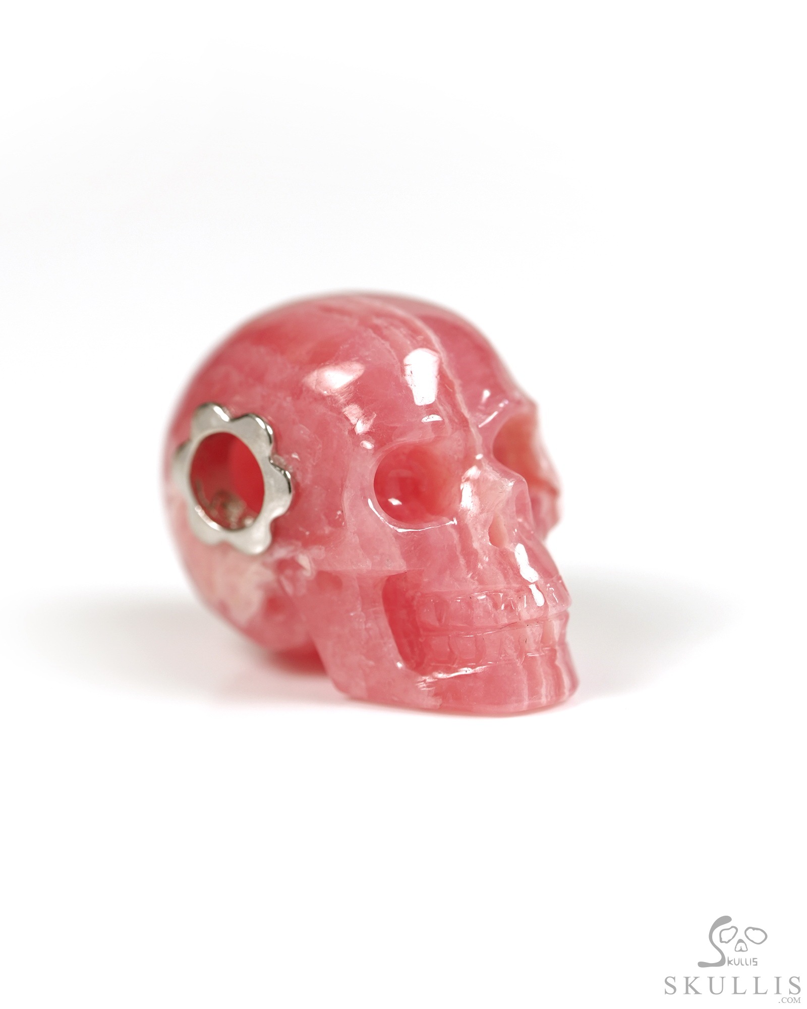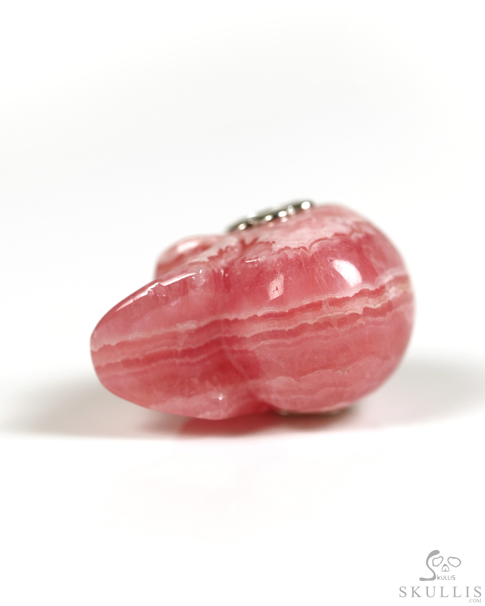 Gemstone 0.7" Rhodochrosite Carved Crystal Skull Pendant With 925 Sterling Silver Chain, Crystal Healing