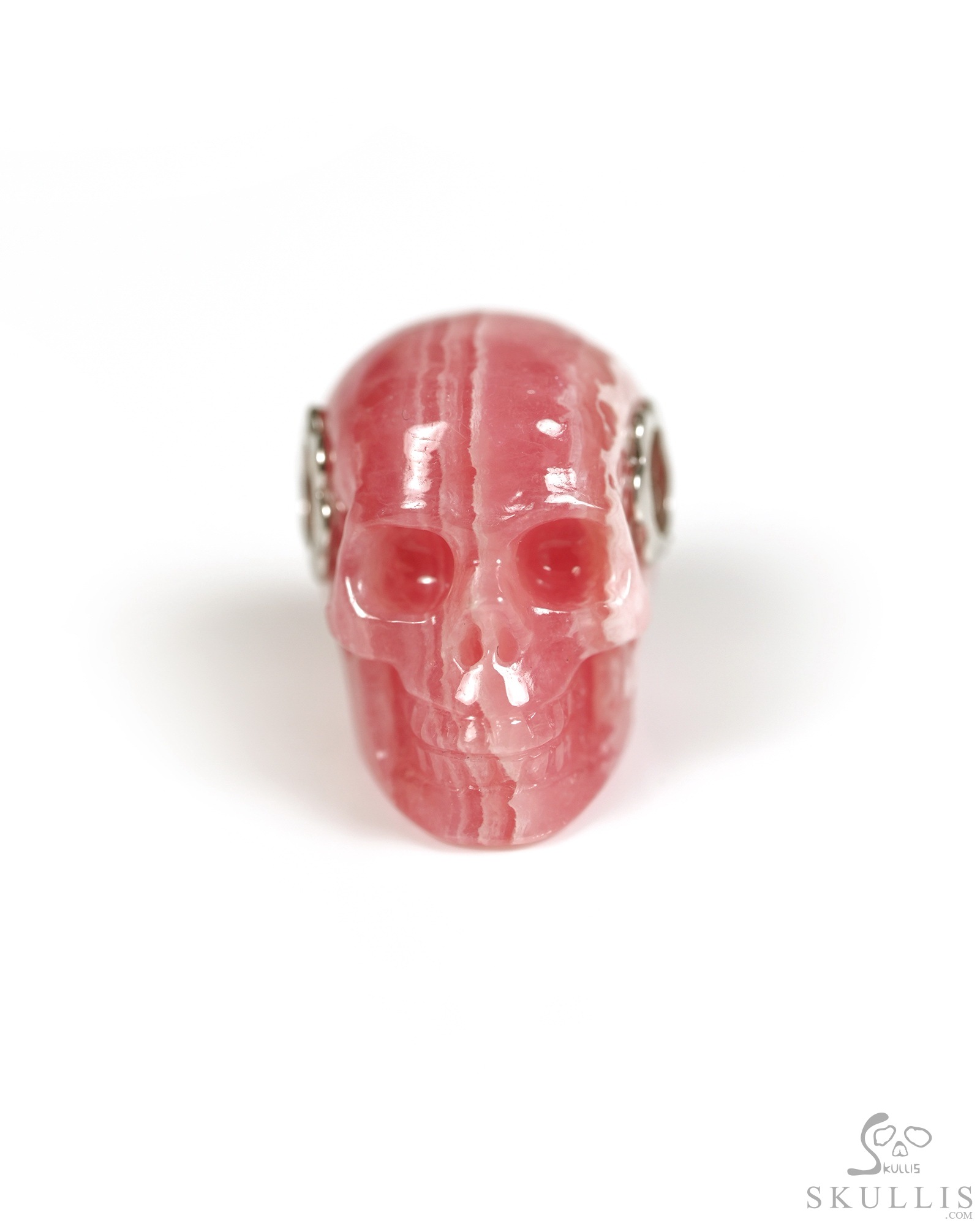 GEMSTONE Ring Inside Diameter9.5(20 mm) Rhodochrosite Carved Crystal Skull Ring, 925 Sterling Silver, Crystal Healing