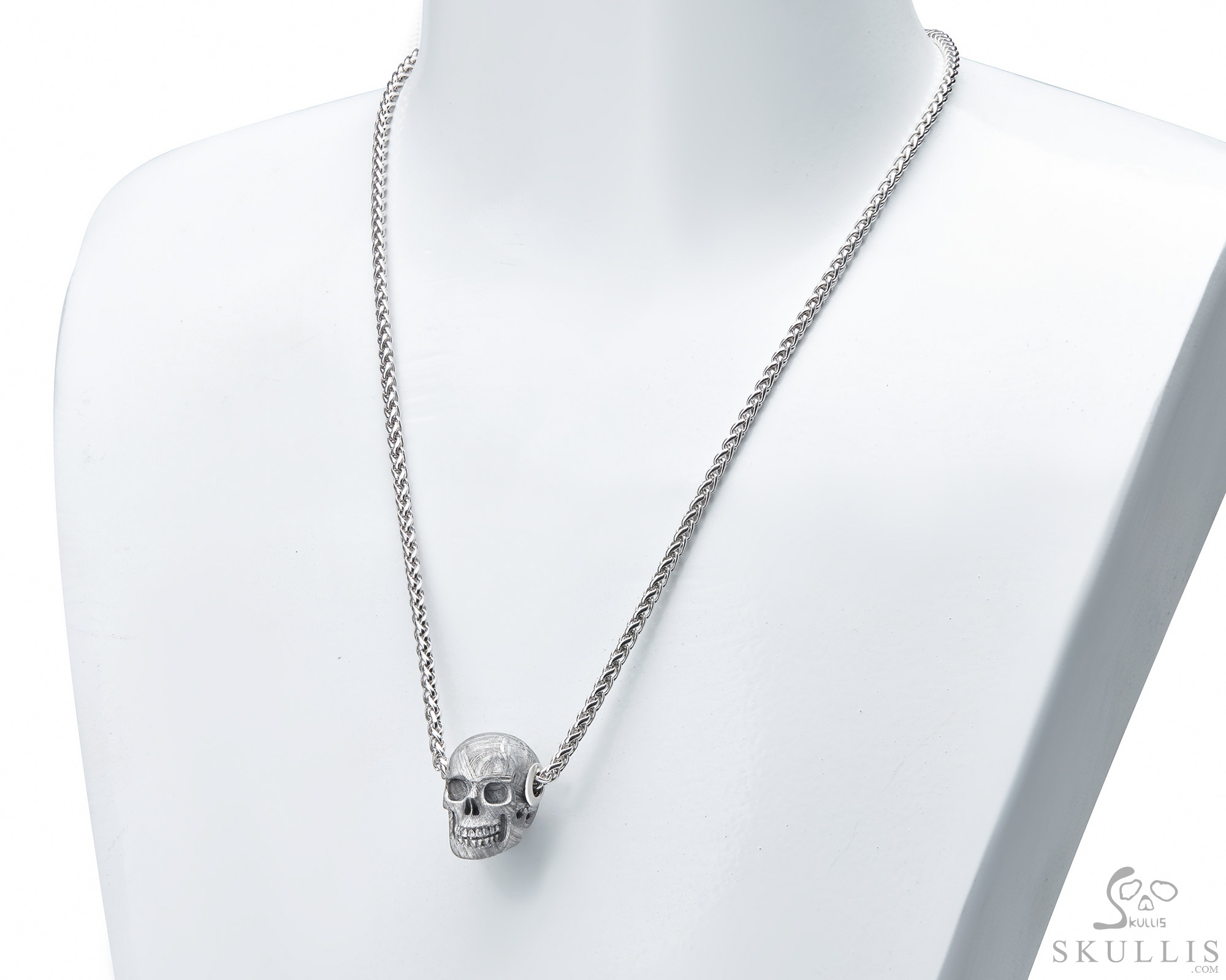 Necklace of 0.8" Sweden Meteorite Hand Carved Crystal Skull Pendant, Skull Jewelry