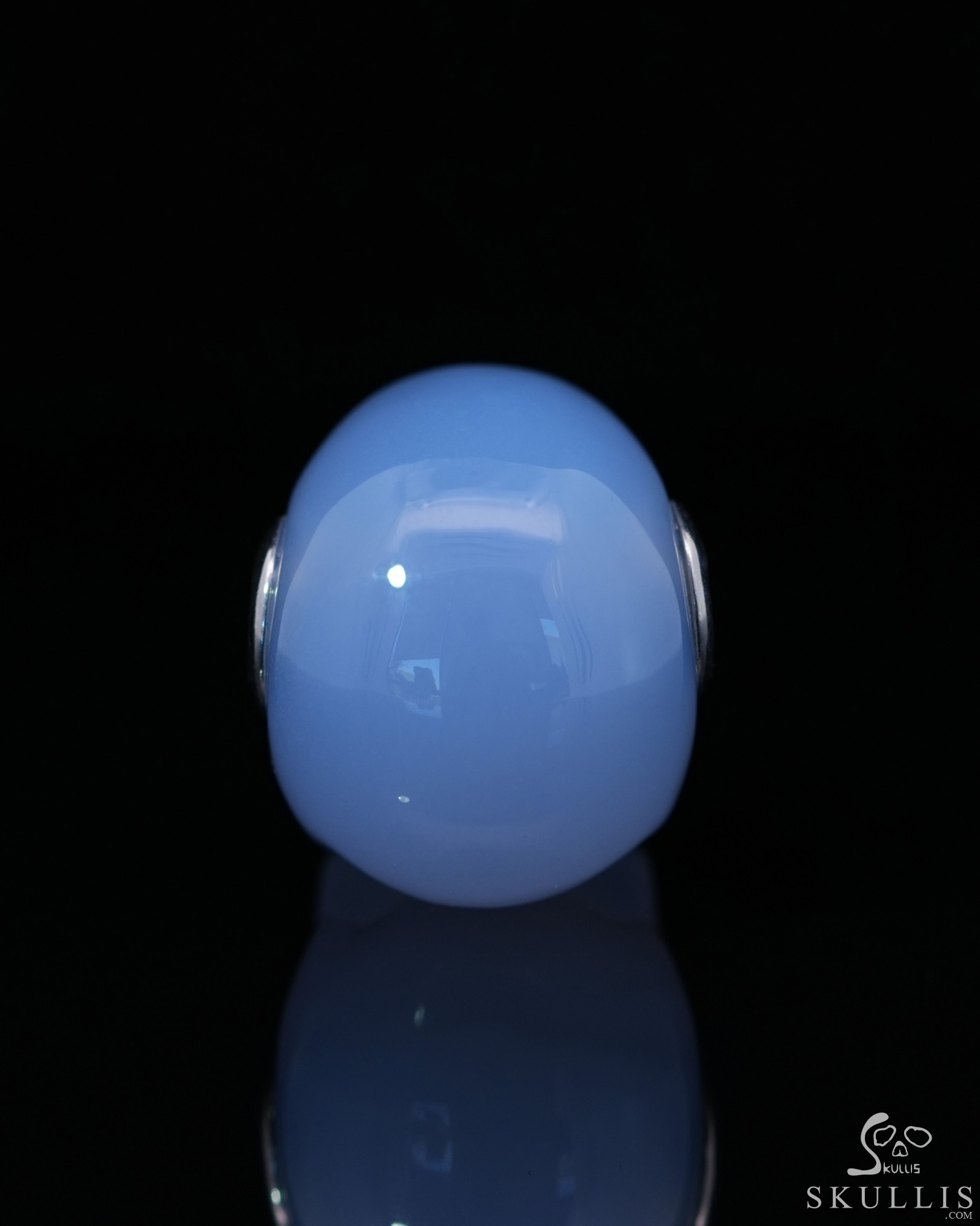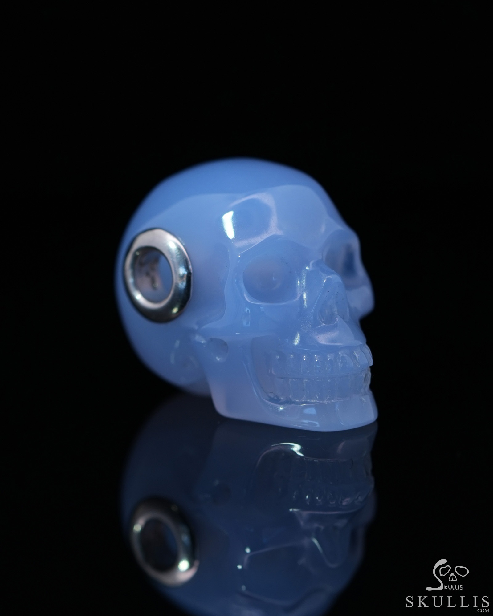 You are looking at a Blue Chalcedony skull. The skull is 0.9 inches from front to back.
