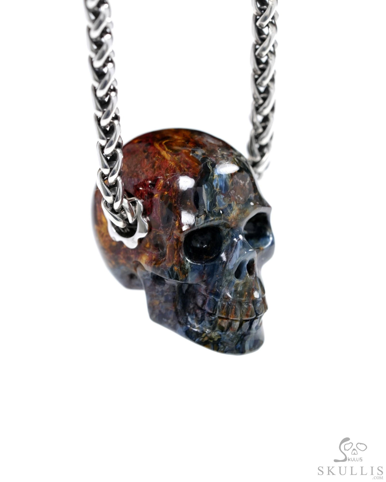 Necklace of 2.3" Pietersite Hand Carved Crystal Skull Pendant, Skull Jewelry