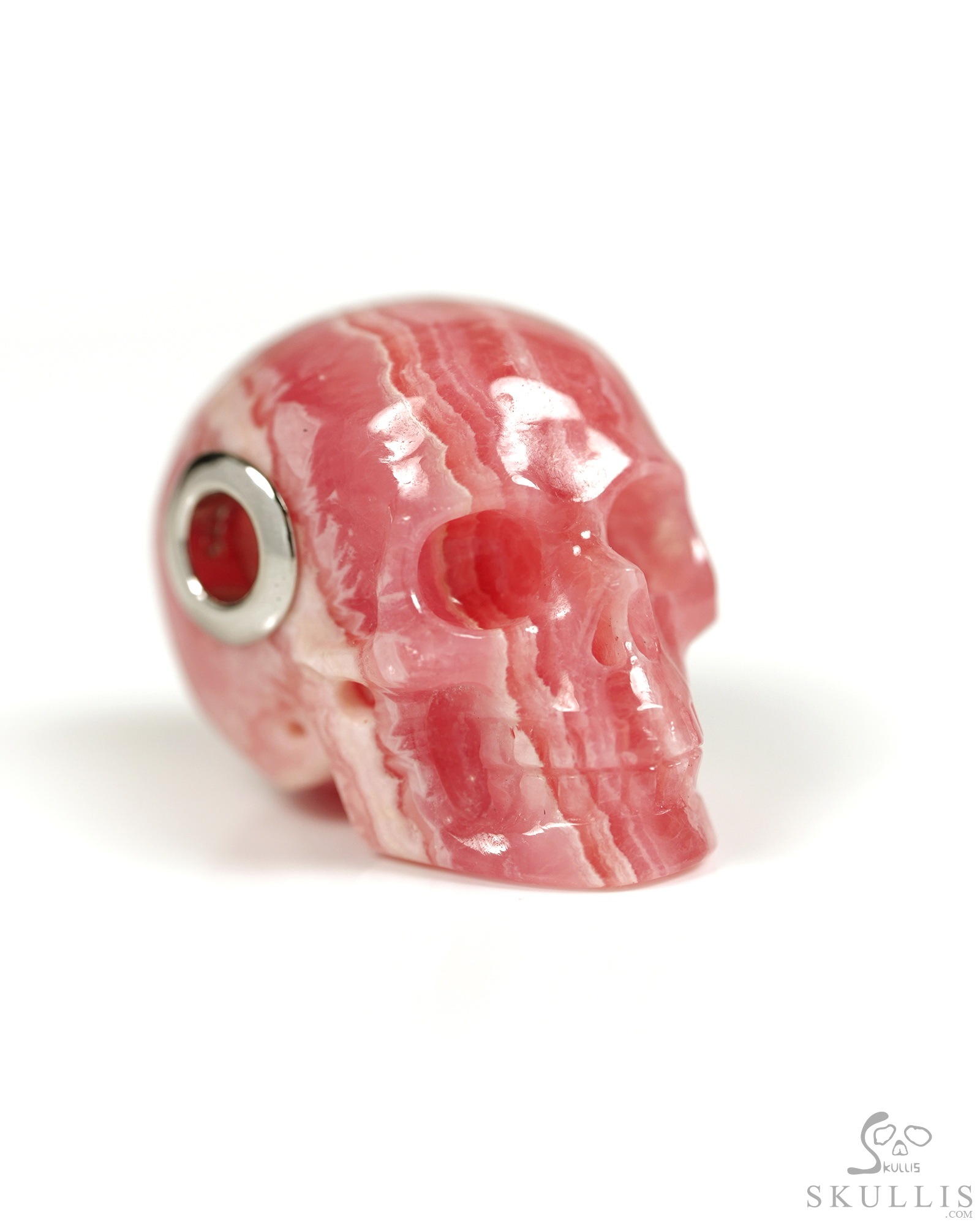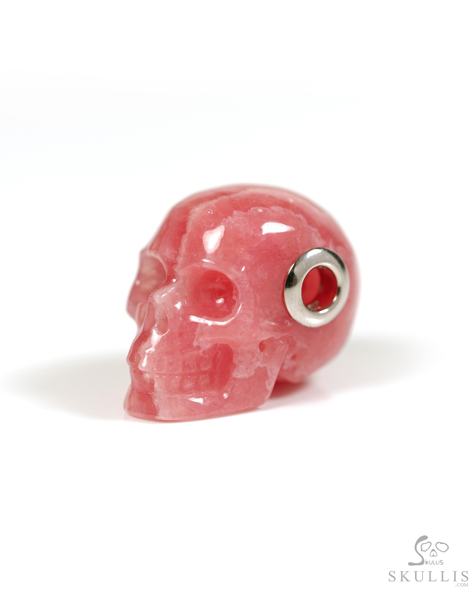 Necklace of 1.0" Rhodochrosite Hand Carved Crystal Skull Pendant, Skull Jewelry
