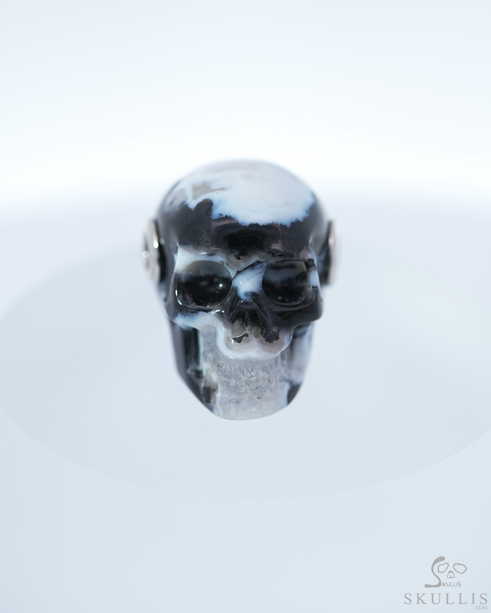 3.9" Black Zebra Agate Hand Carved Crystal Skull, Super Realistic, Crystal Healing