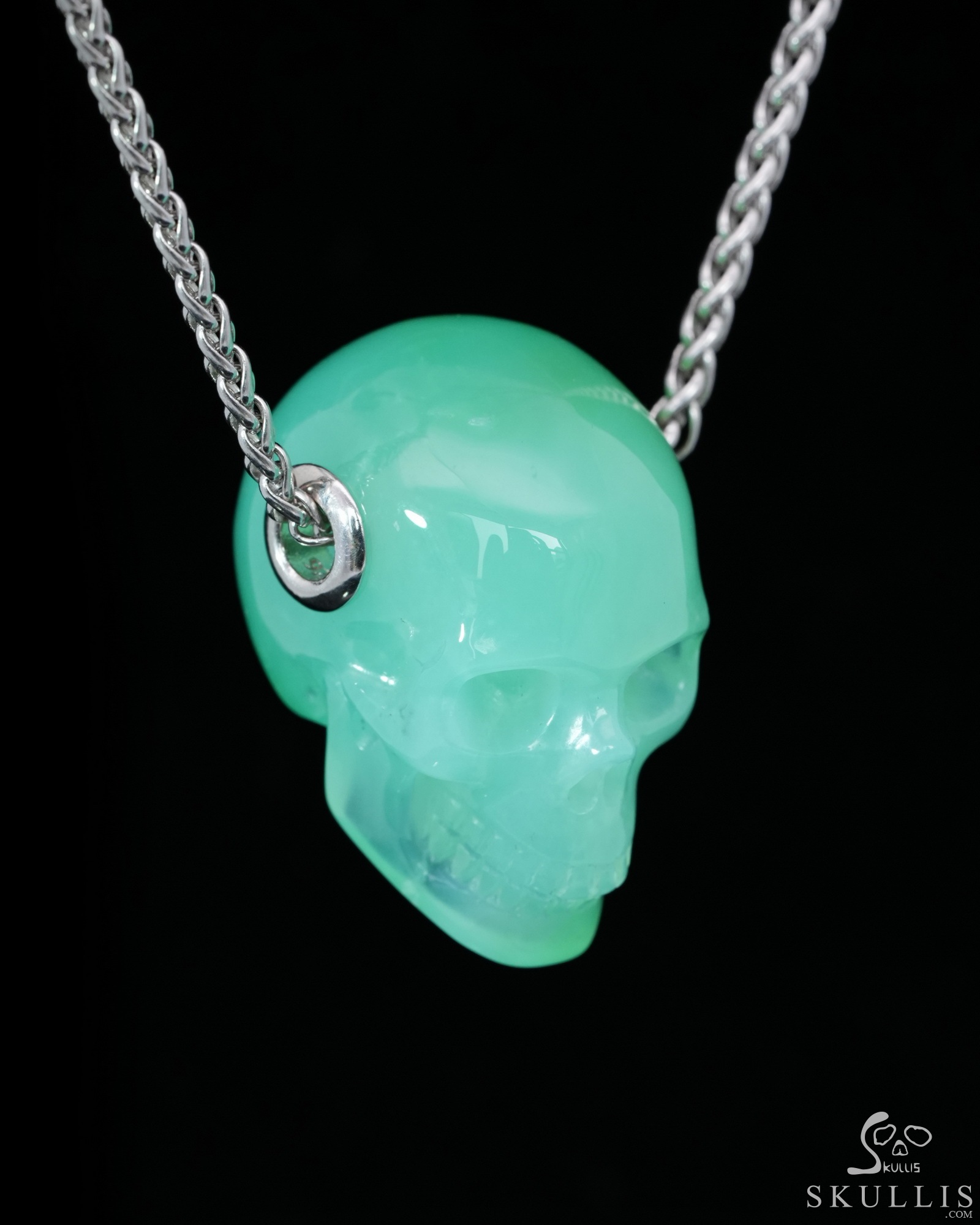 Necklace of 0.7" Top-Quality Chrysoprase Hand Carved Crystal Skull Pendant, Skull Jewelry