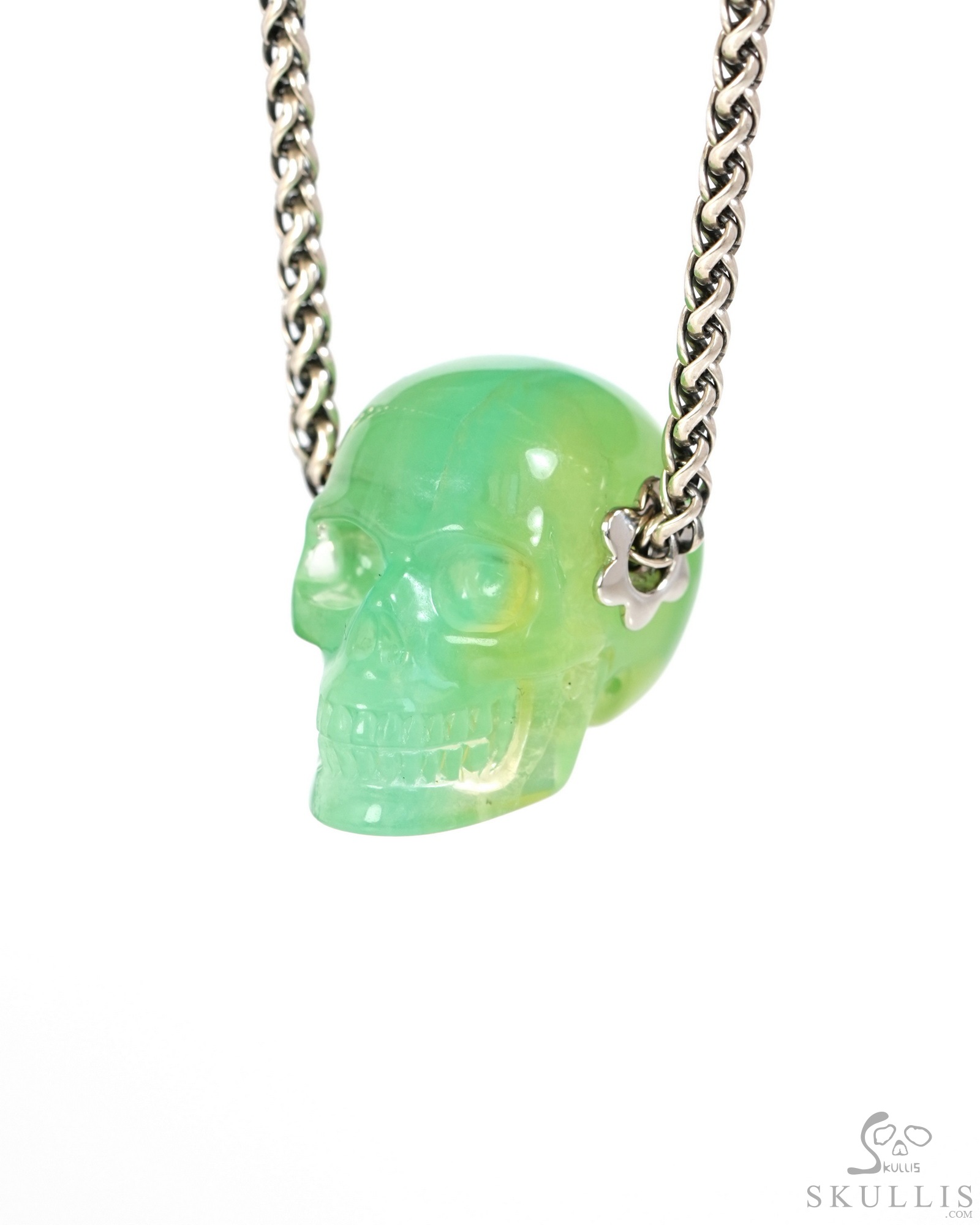 Necklace of 1.1" Fluorite Hand Carved Crystal Skull Pendant, Skull Jewelry