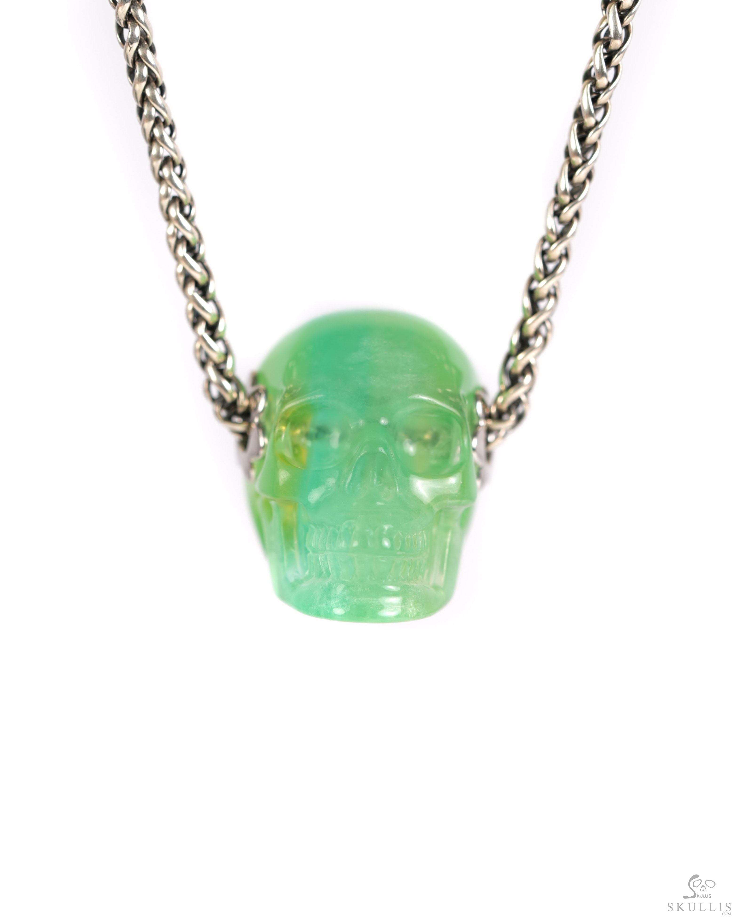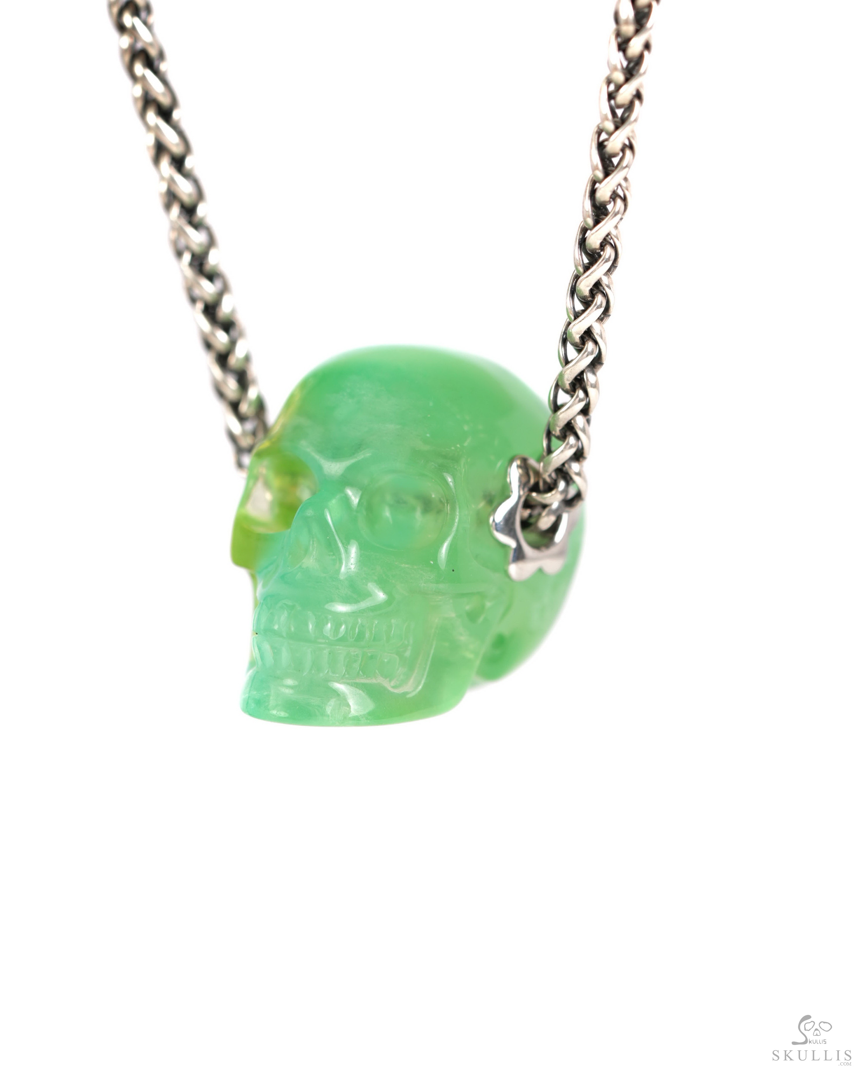 Necklace of 1.1" Fluorite Hand Carved Crystal Skull Pendant, Skull Jewelry