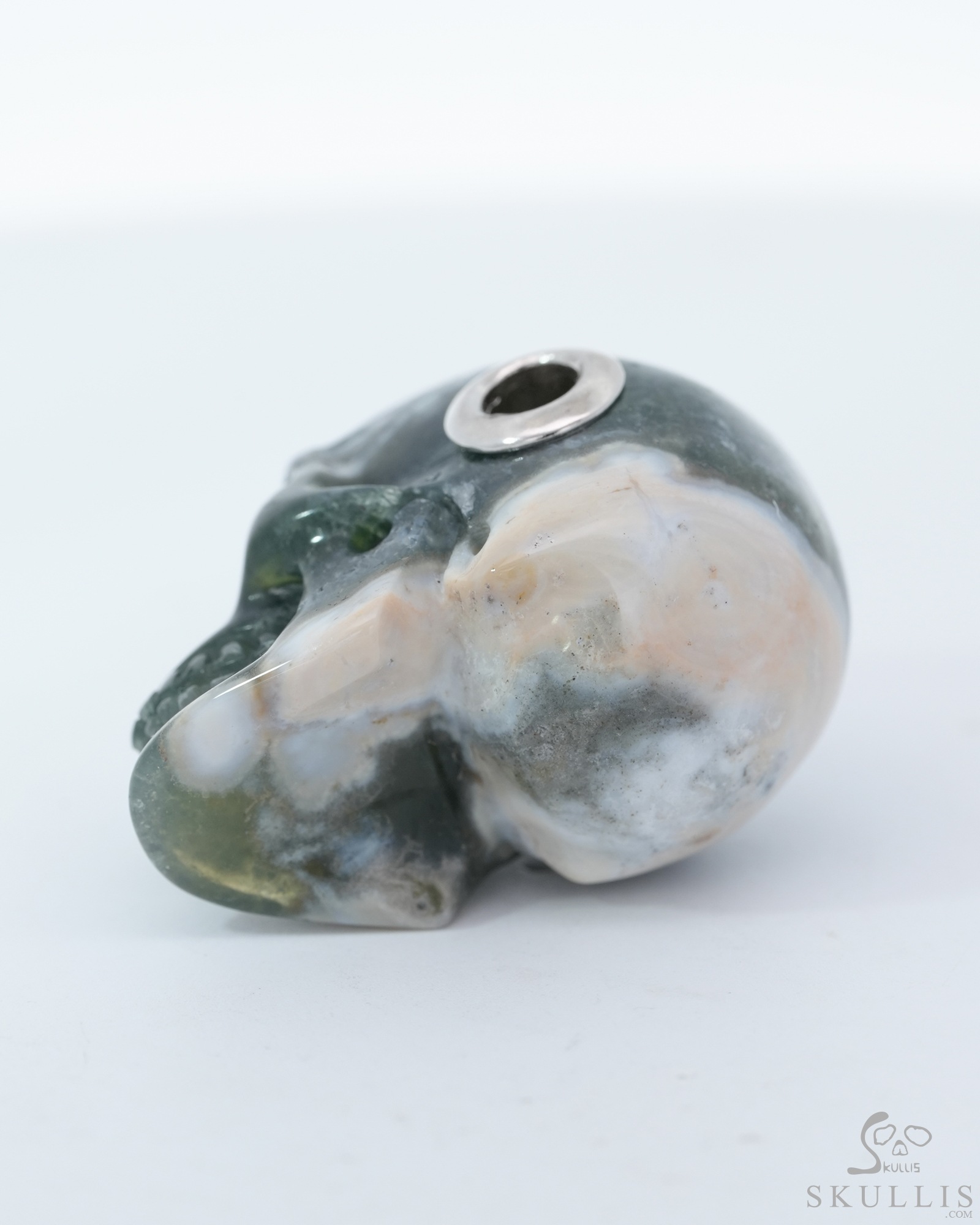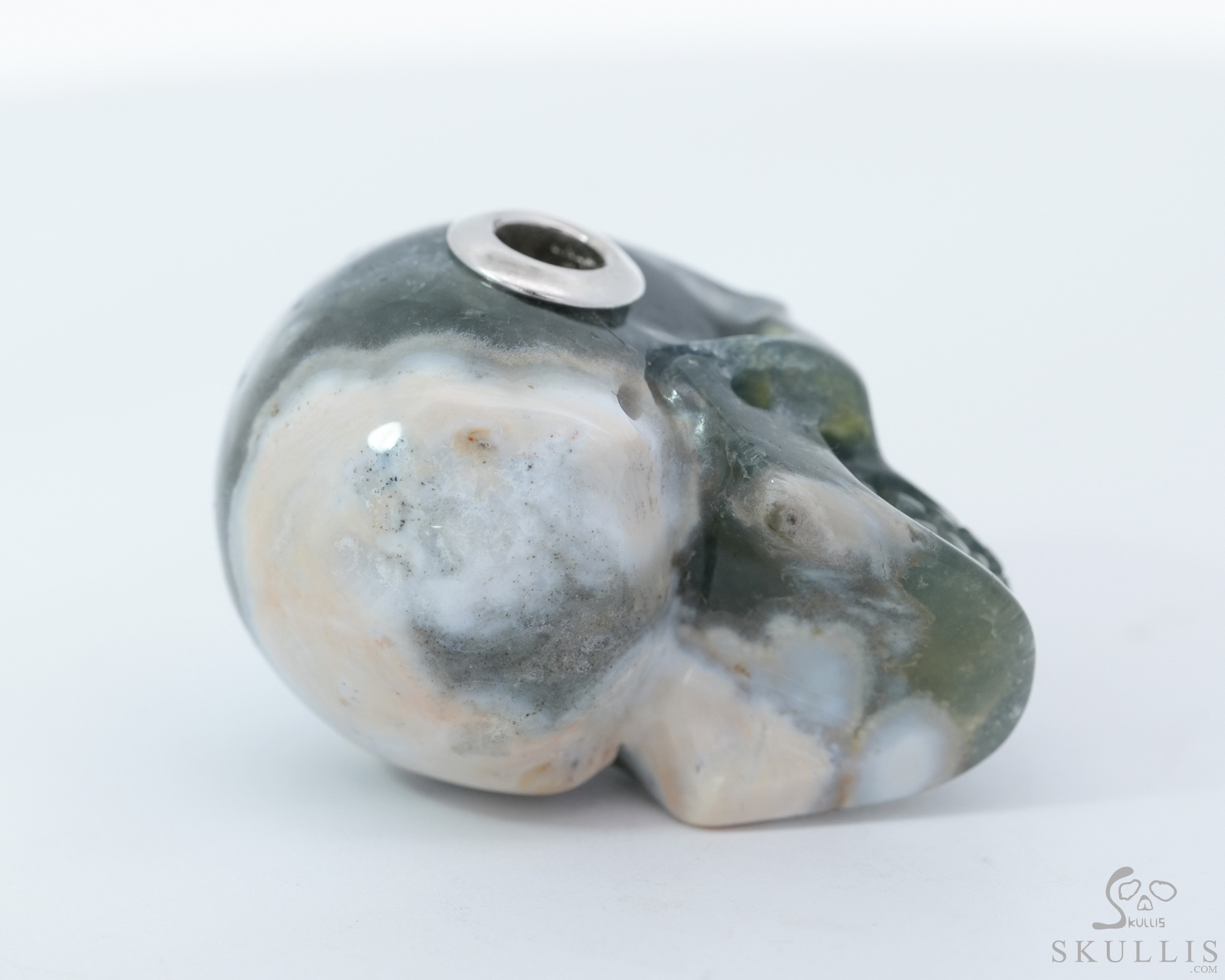 Necklace of 1.1" Ocean Jasper Hand Carved Crystal Skull Pendant, Skull Jewelry