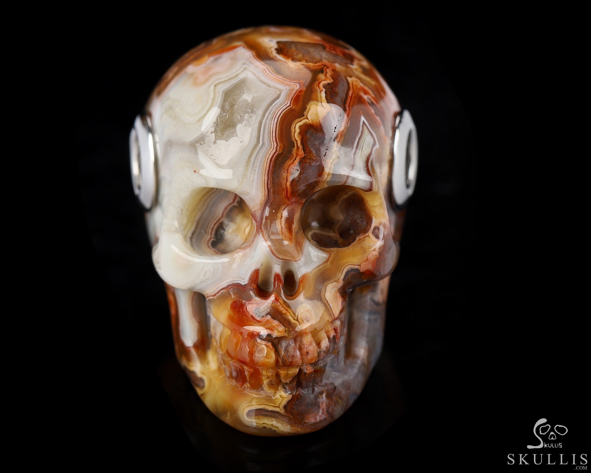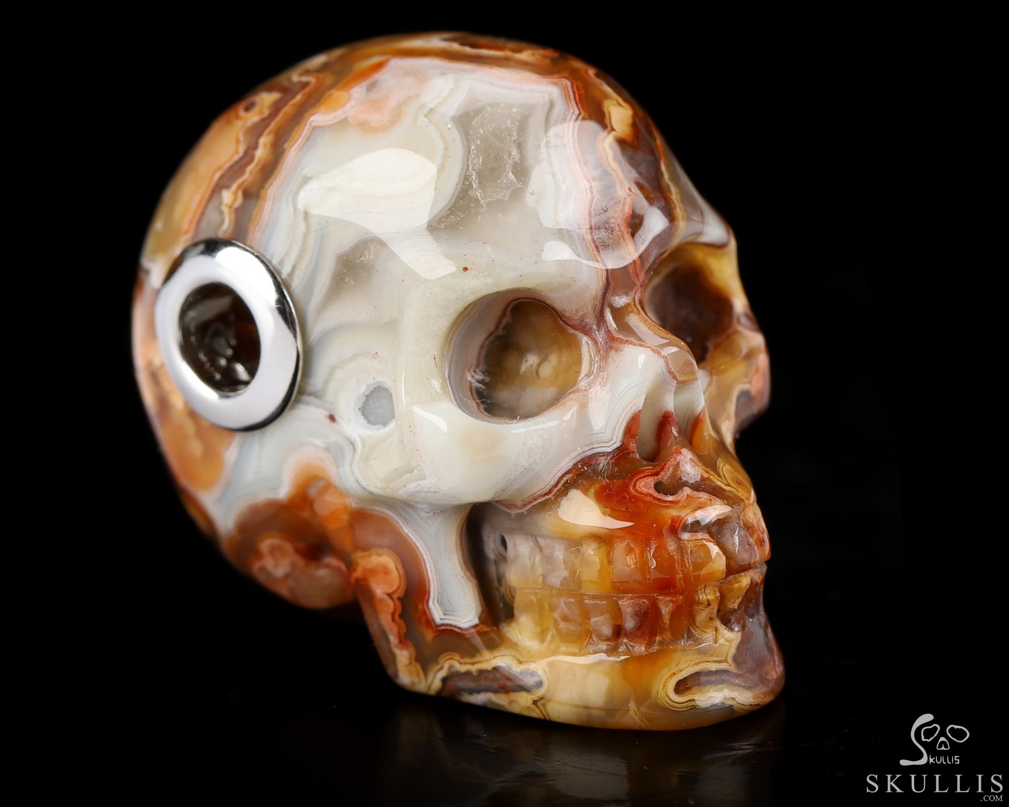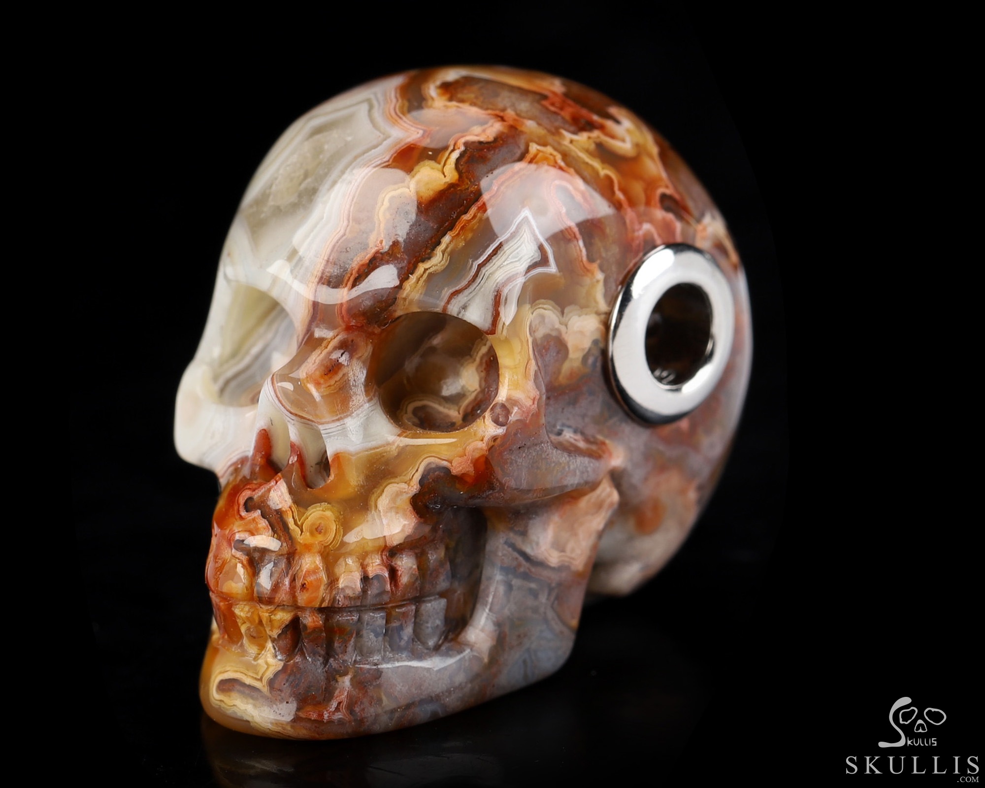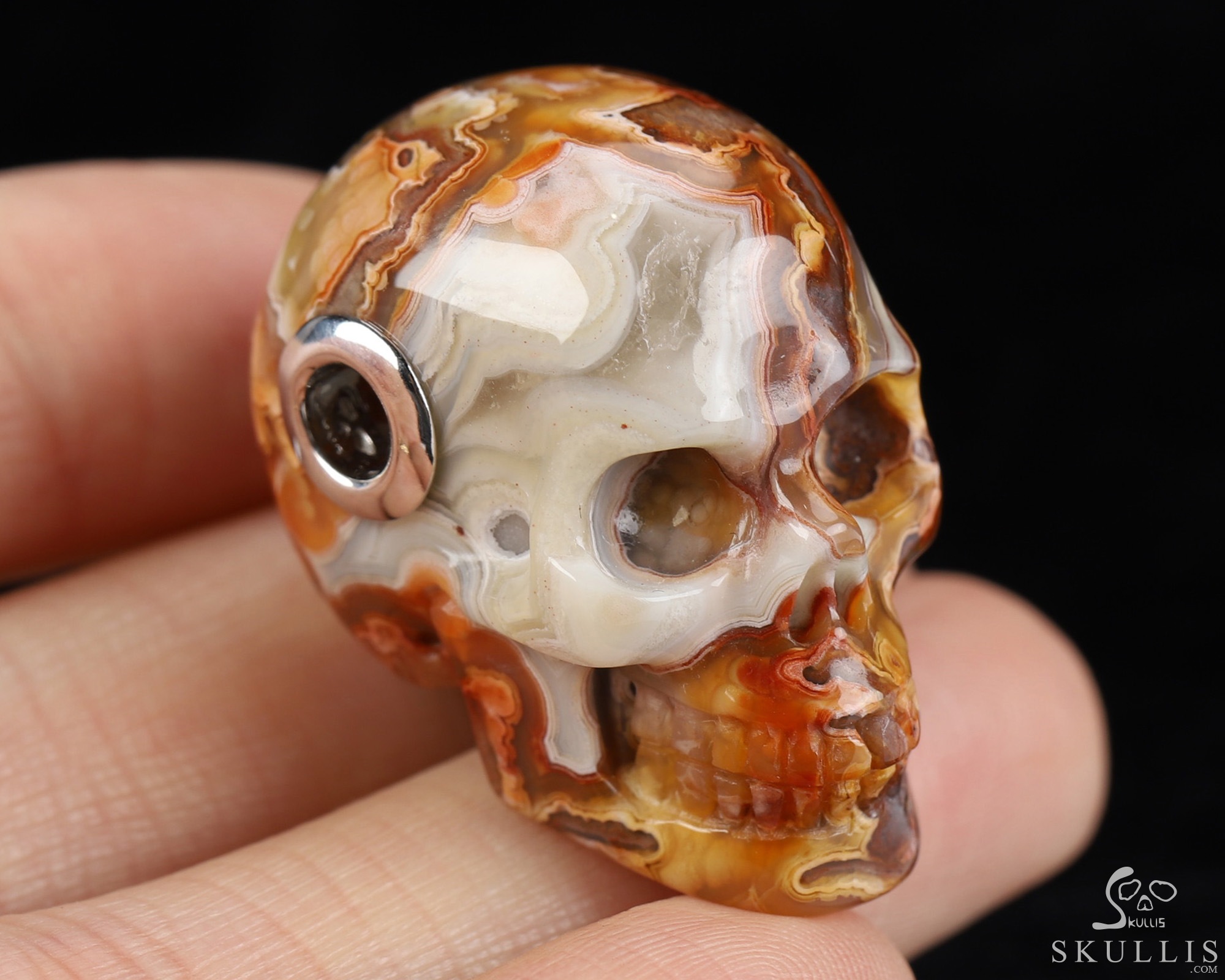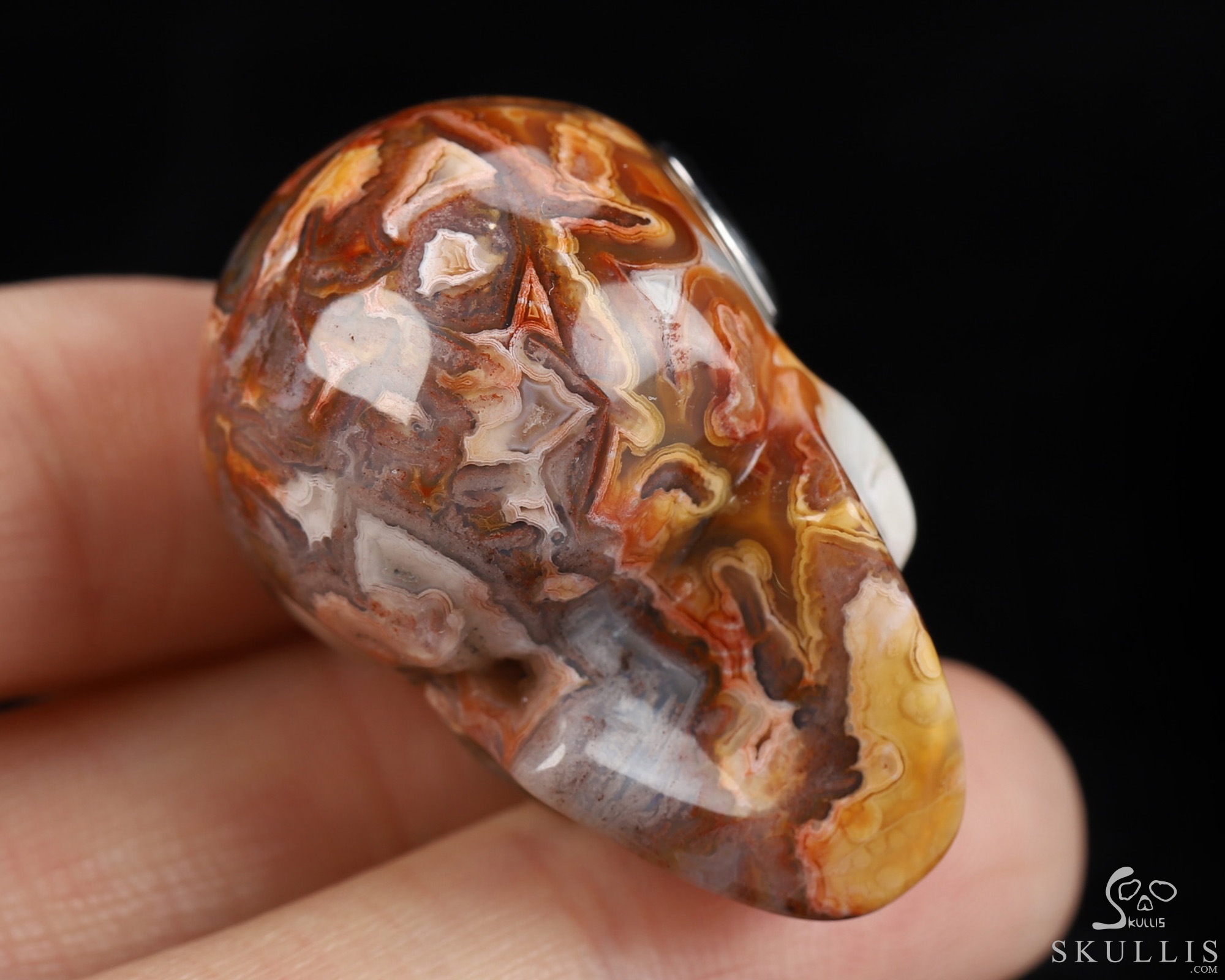 You are looking at a Red Crazy Lace Agate skull. The skull is 1.1 inches from front to back.