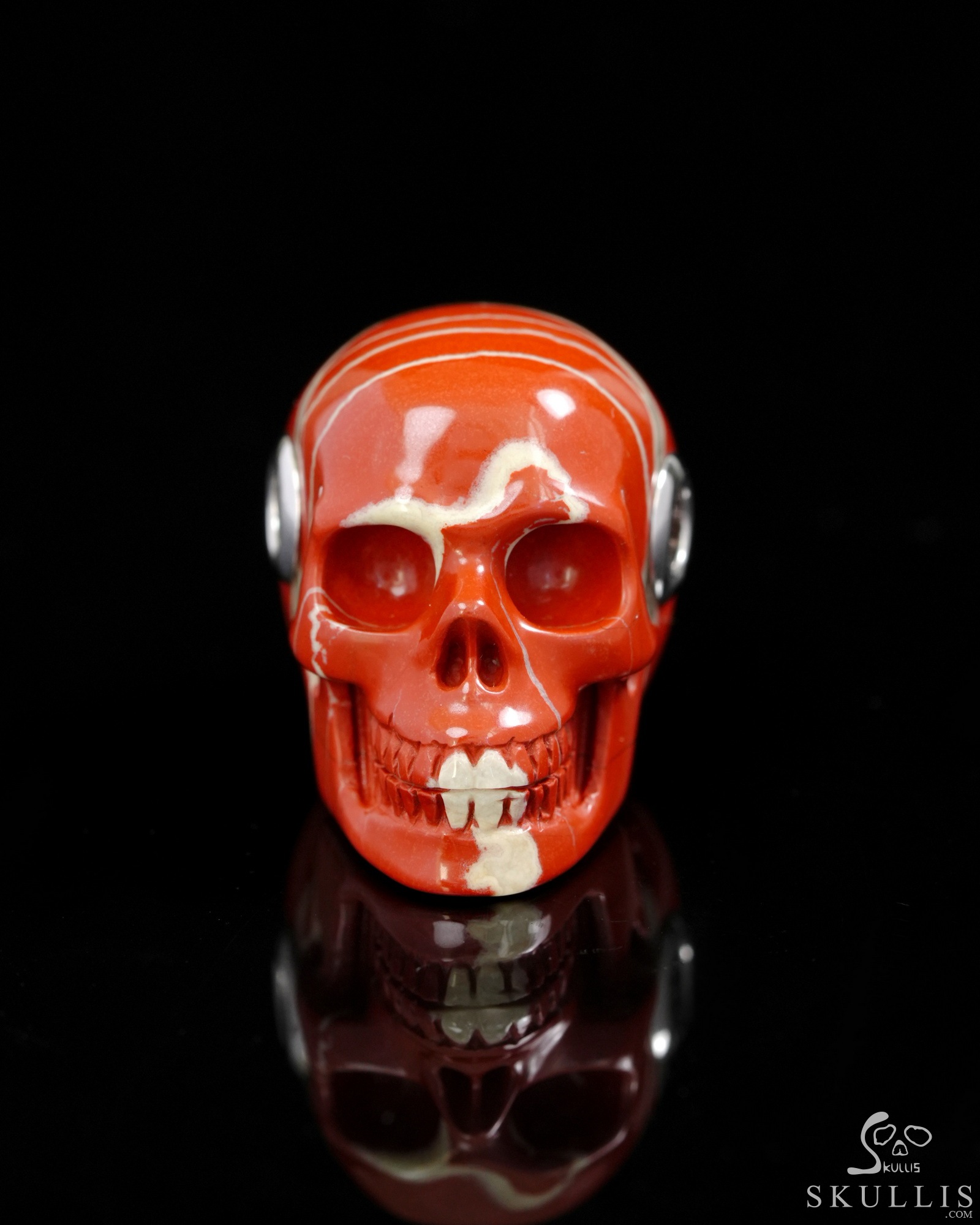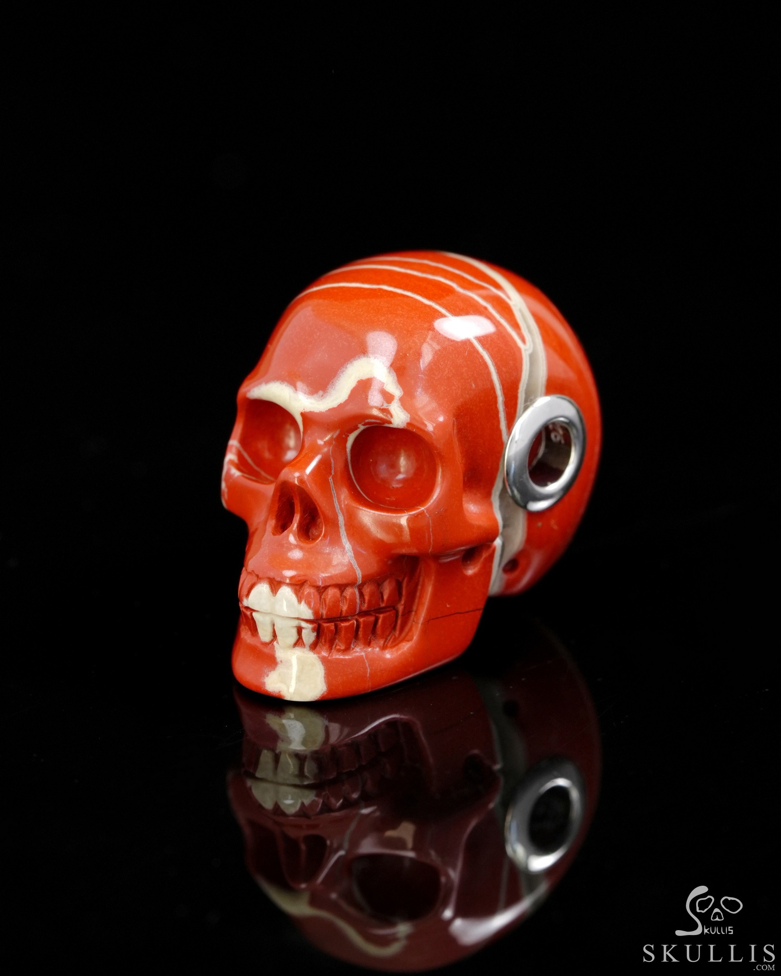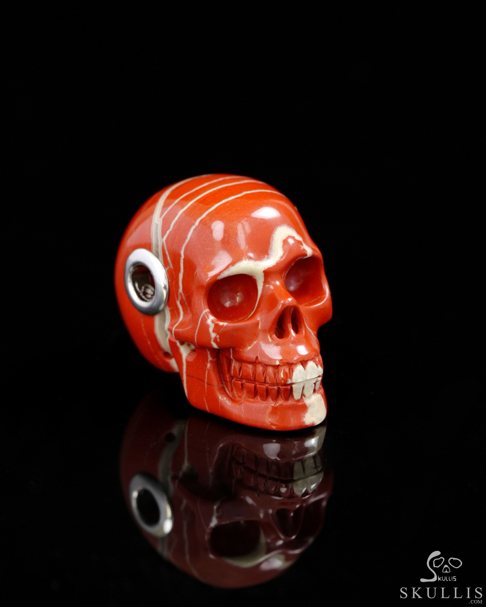 Necklace of 1.1" Red Jasper Hand Carved Crystal Skull Pendant, Skull Jewelry