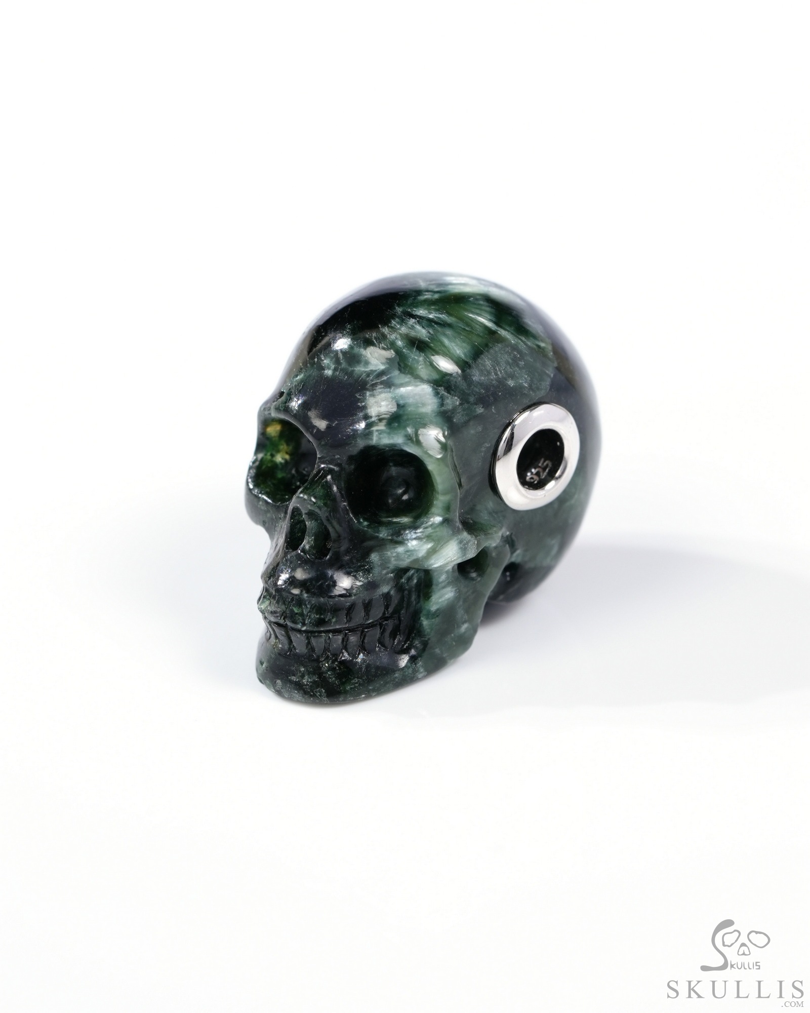 1.5" Seraphinite Hand Carved Crystal Skull, Realistic, Crystal Healing