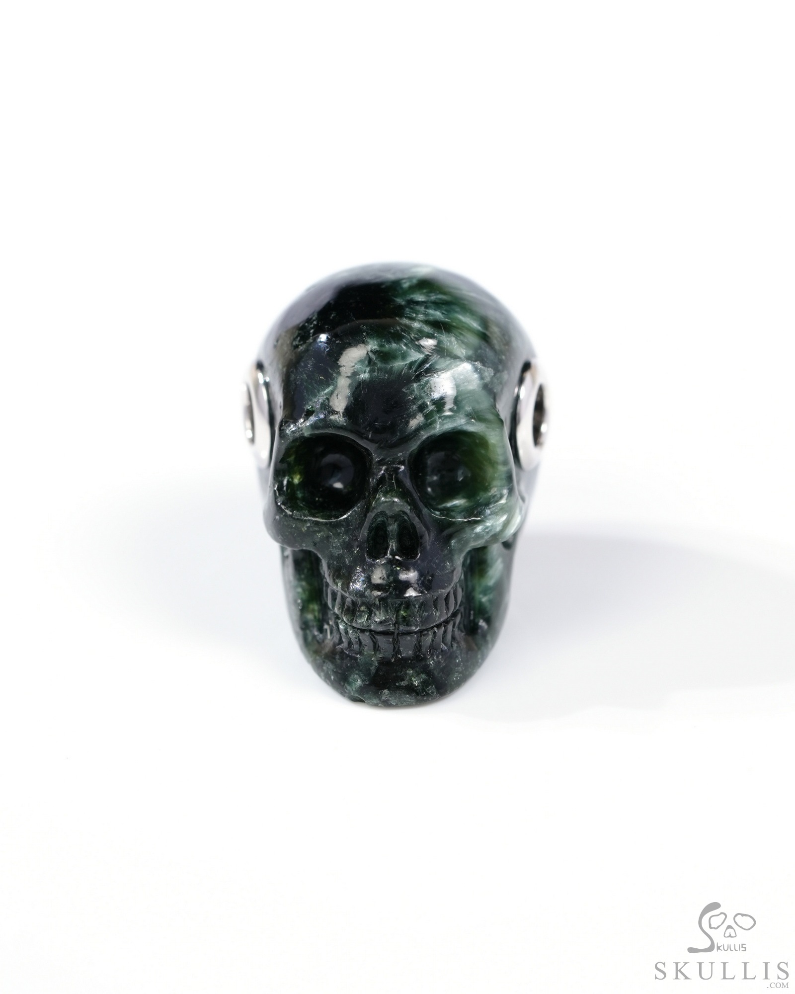 1.8" Seraphinite Hand Carved Crystal Skull, Realistic, Crystal Healing