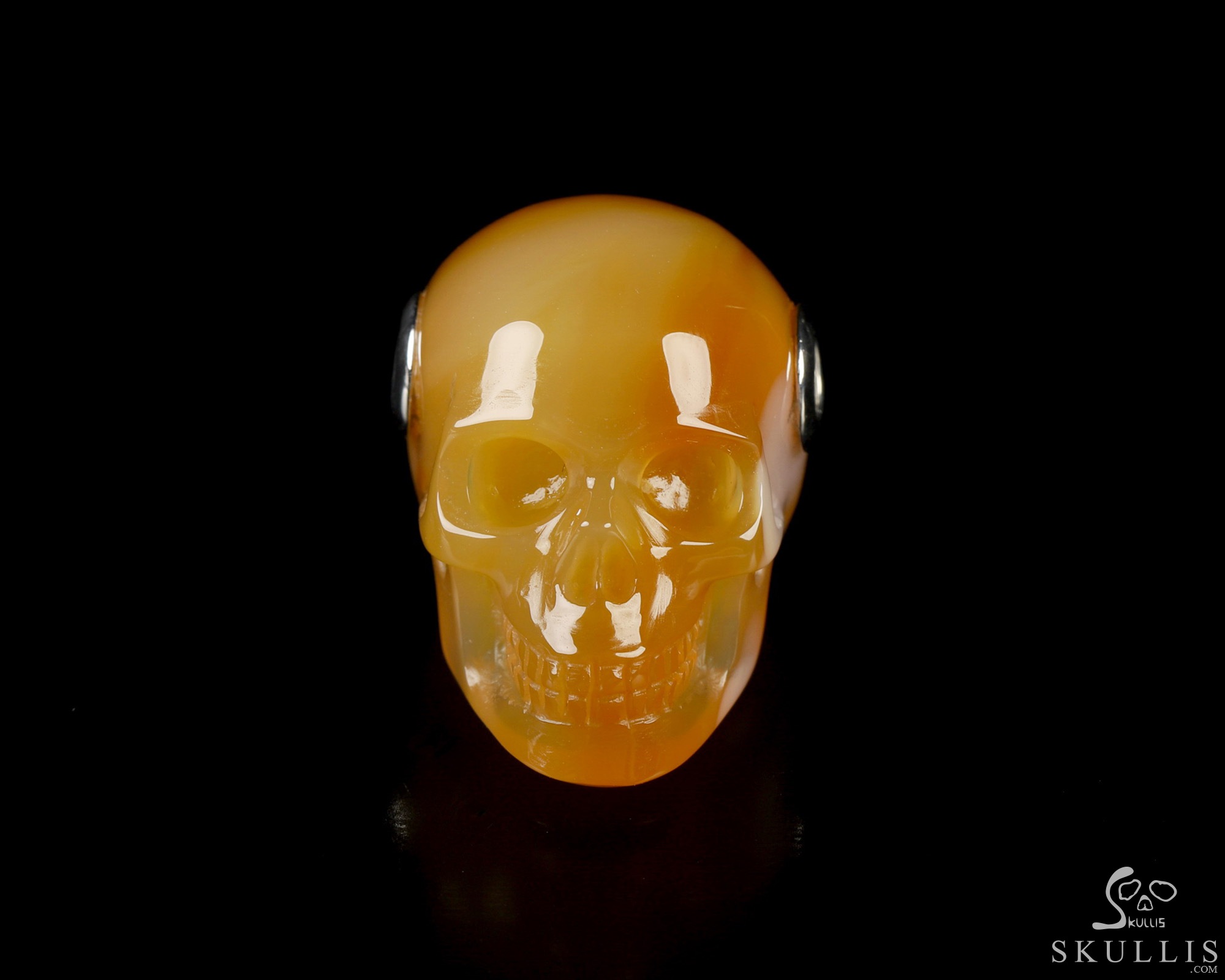 US Size 9# Carnelian Hand Carved Crystal Skull Ring, Skull Jewelry