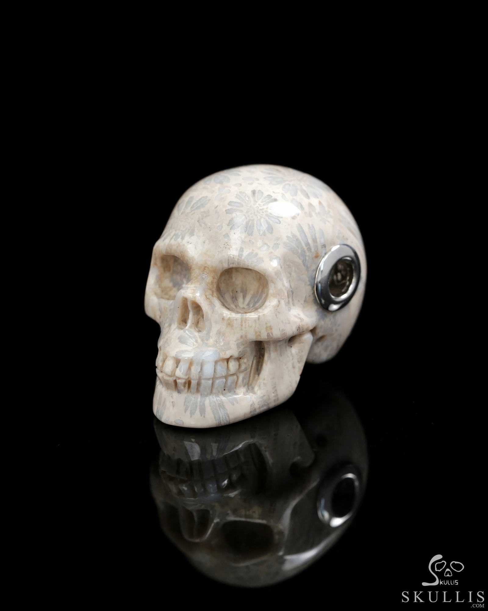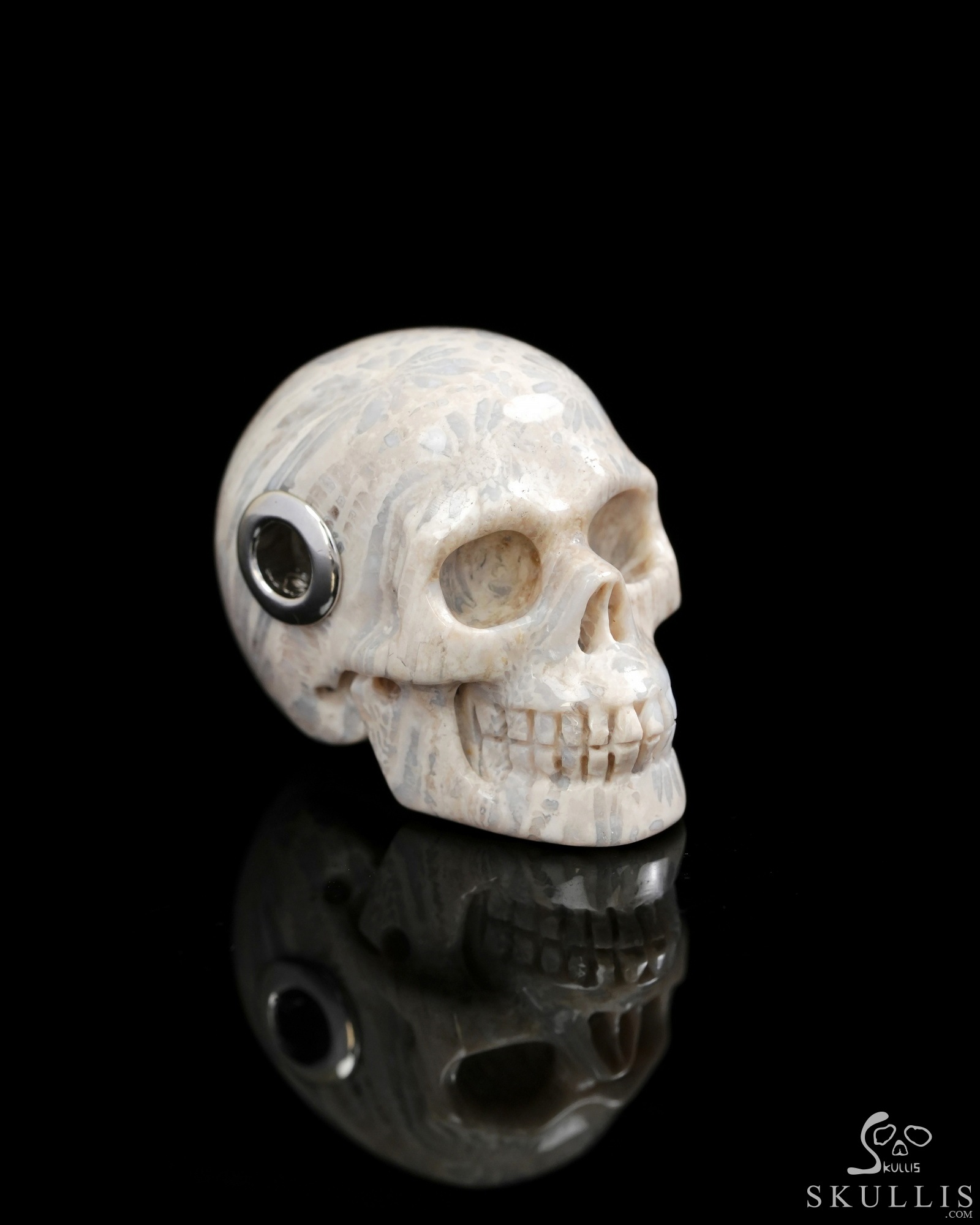 1.1" Coral Fossil Hand Carved Crystal Skull, Realistic, Crystal Healing