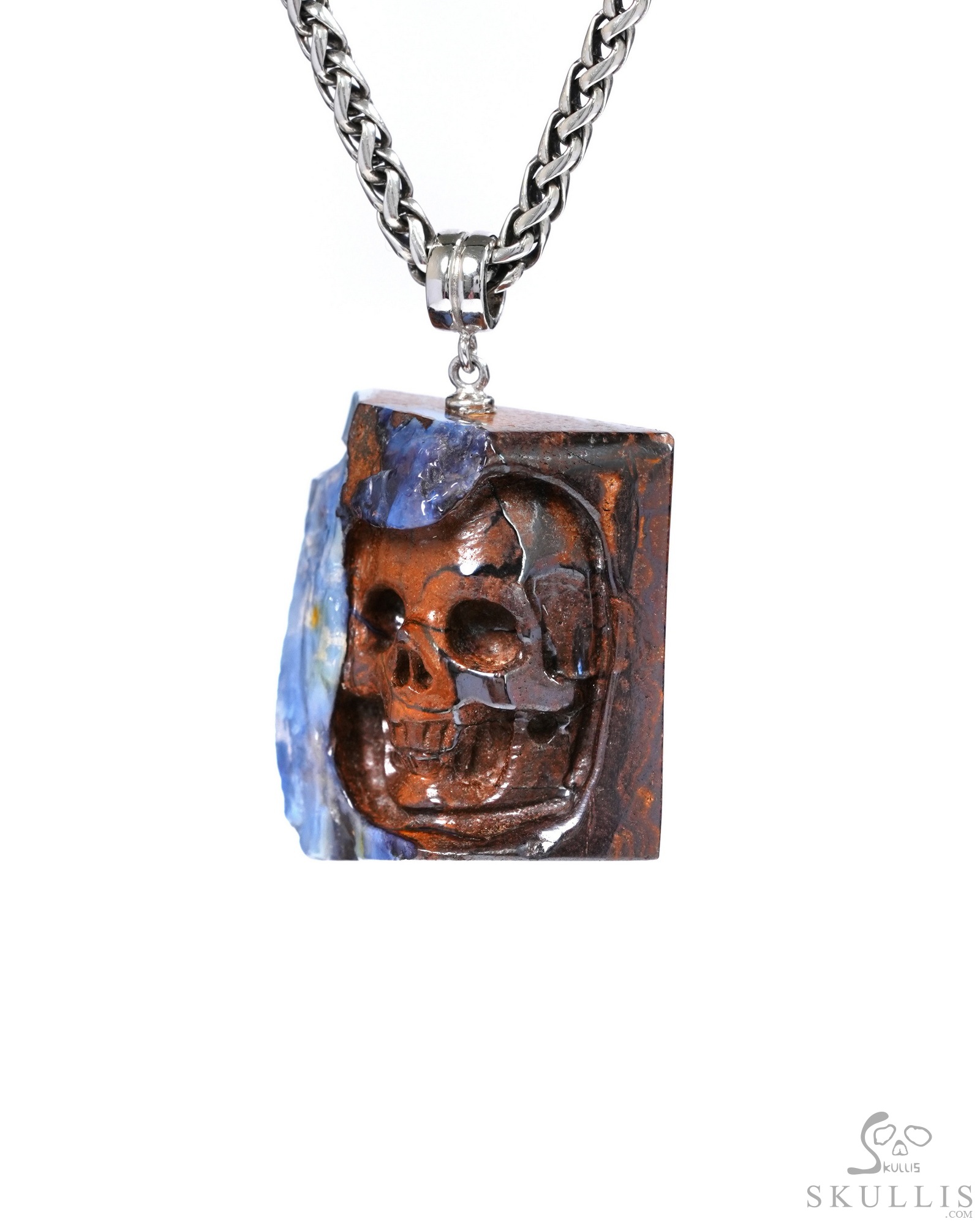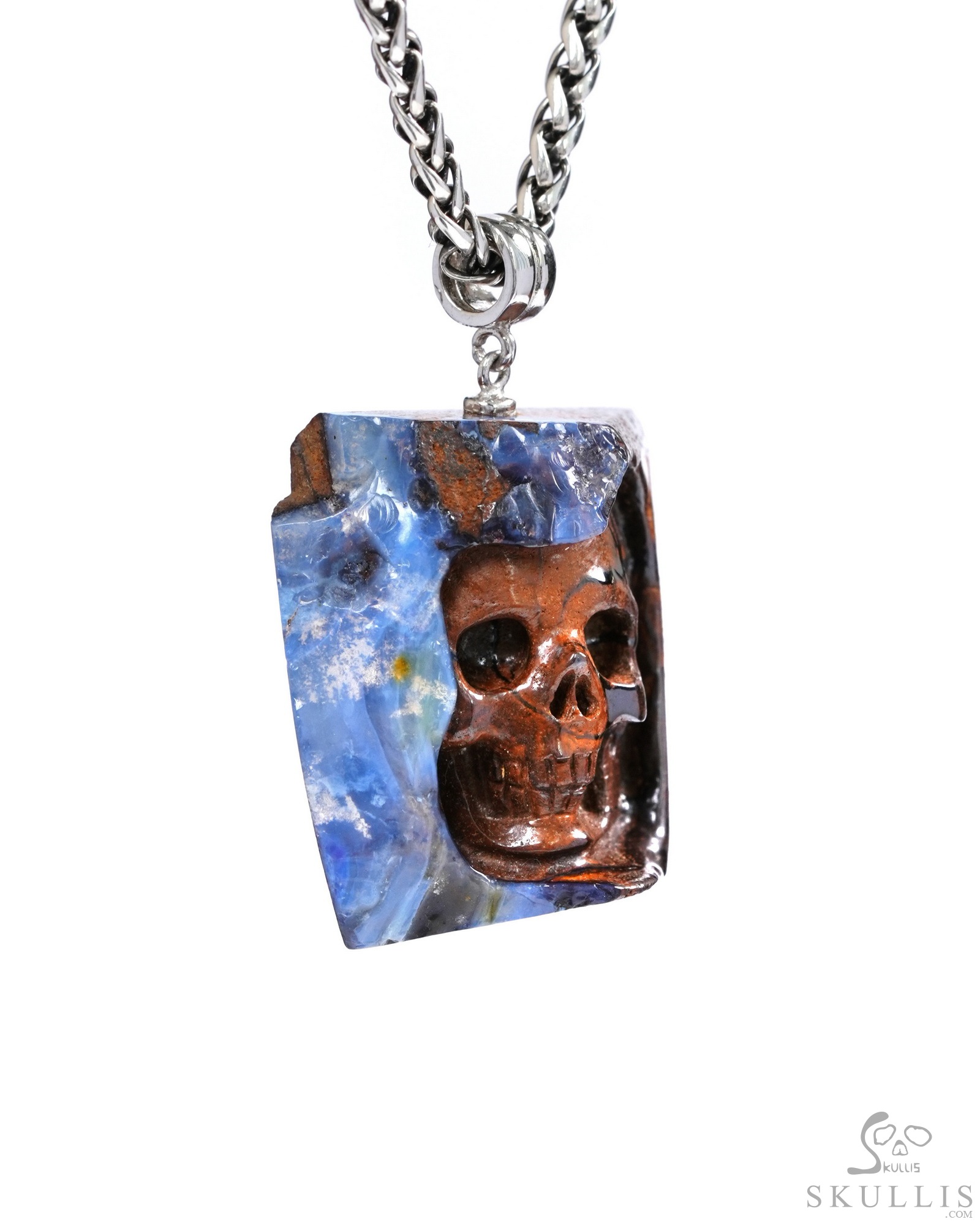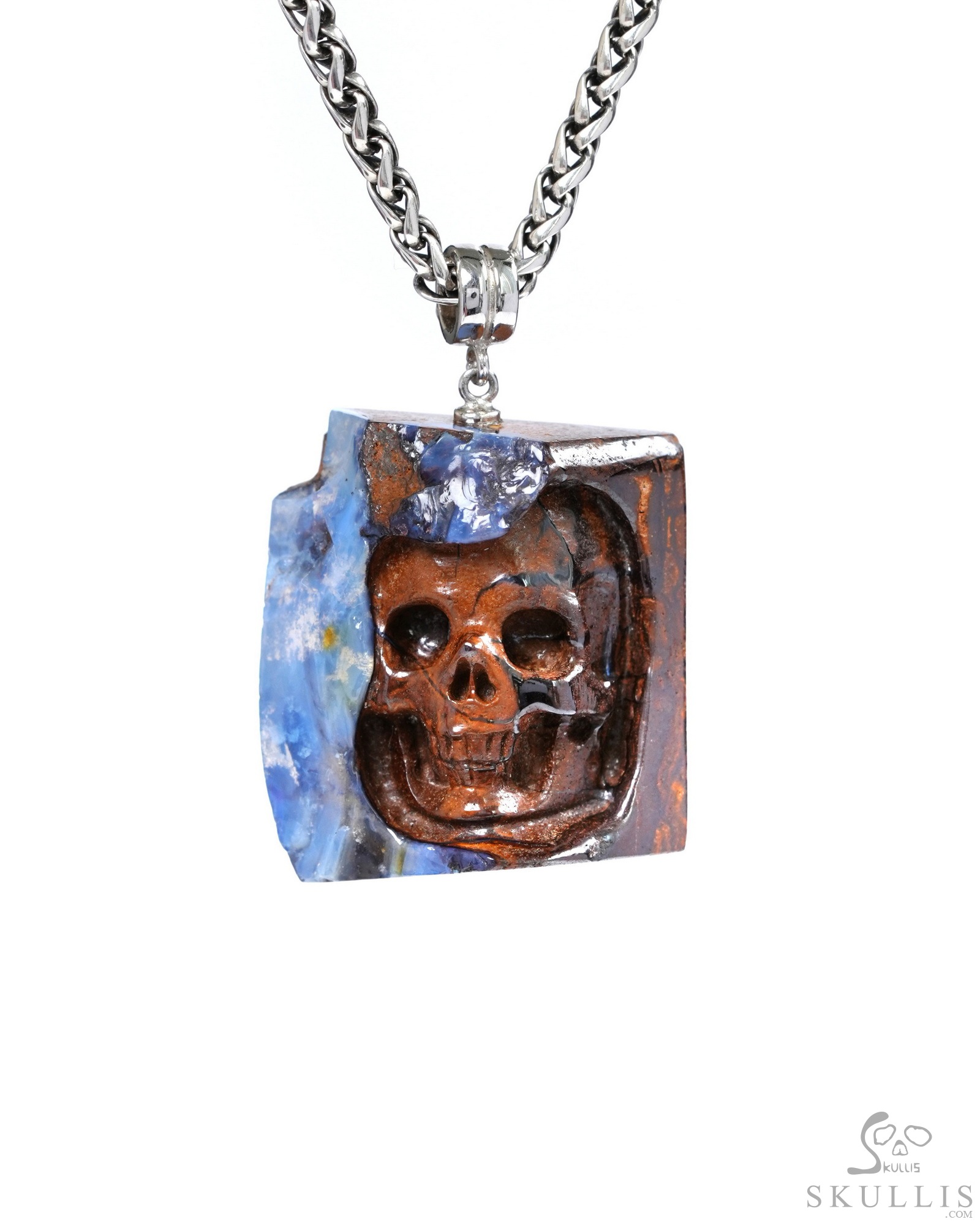Necklace of 1.2" Matrix Opal Hand Carved Crystal Skull Pendant, Skull Jewelry