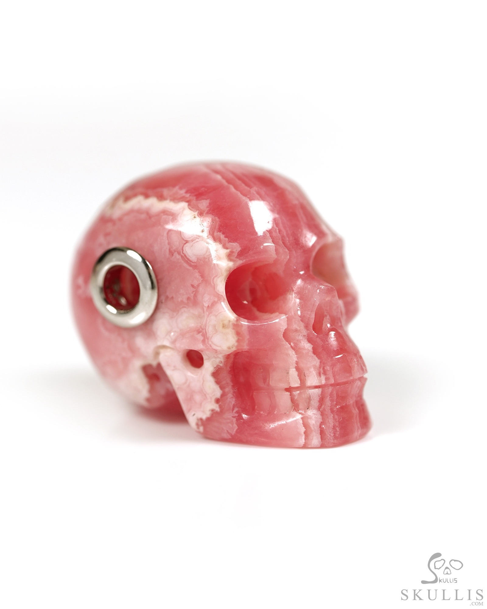 Gemstone 0.7" Rhodochrosite Hand Carved Crystal Skull, Realistic, Crystal Healing