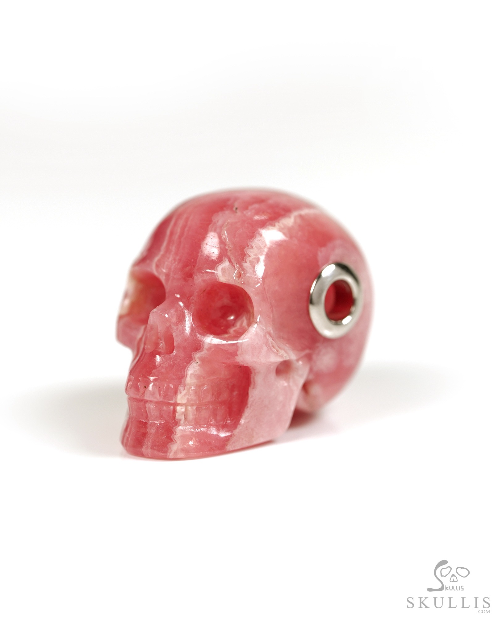 Gemstone 0.7" Rhodochrosite Carved Crystal Skull Pendant With 925 Sterling Silver Chain, Crystal Healing
