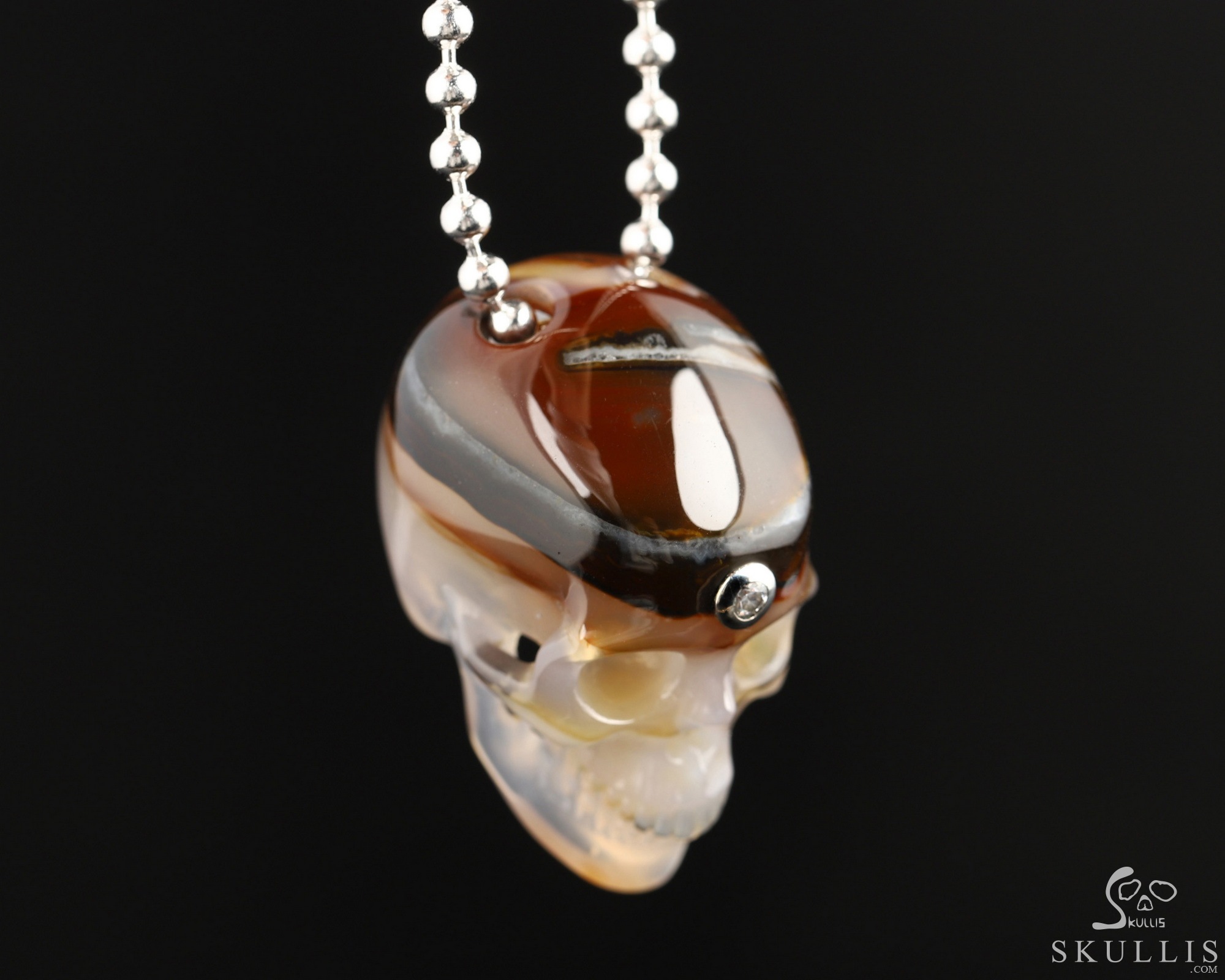 Necklace of 1.4" Premium Brazilian Agate Hand Carved Crystal Skull Pendant, Skull Jewelry