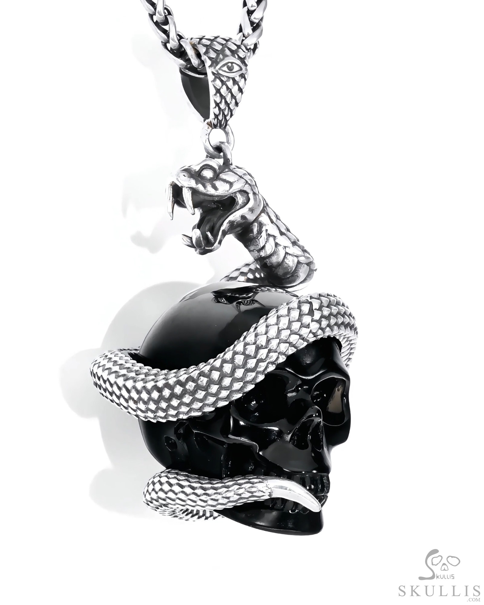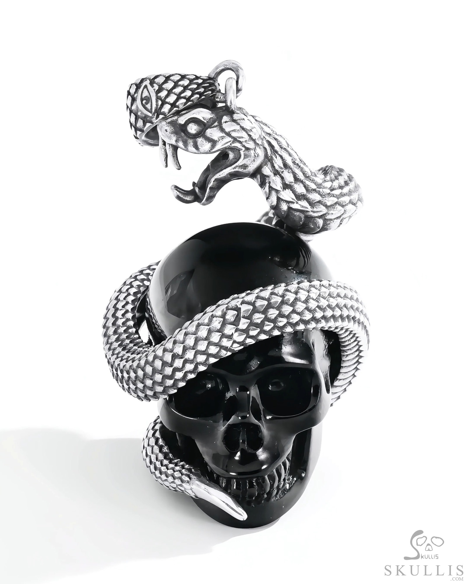 AWESOME 7.5" Black Obsidian Carved Crystal Skull & Snake, Crystal Healing