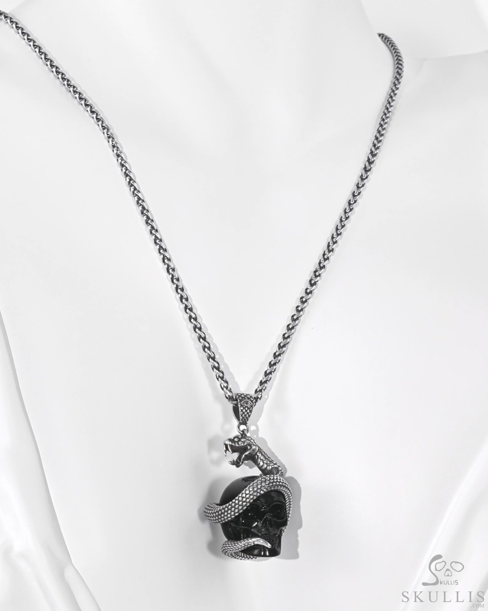 Necklace of 1.5" Black Obsidian Hand Carved Crystal Skull Pendant, Skull Jewelry
