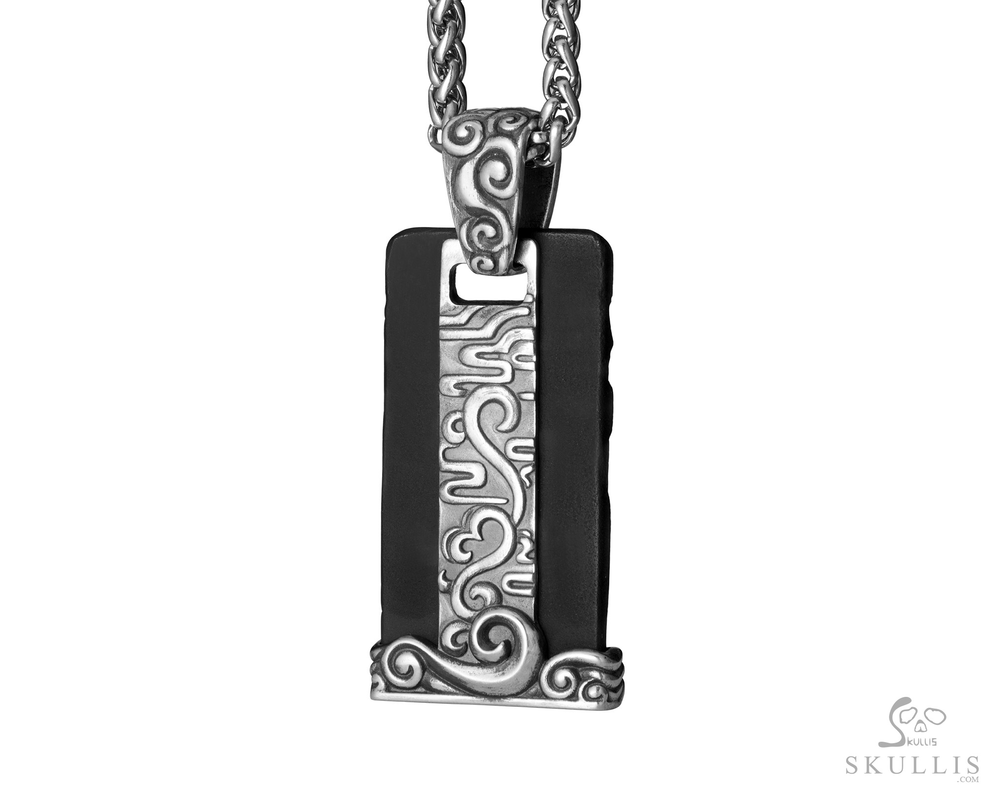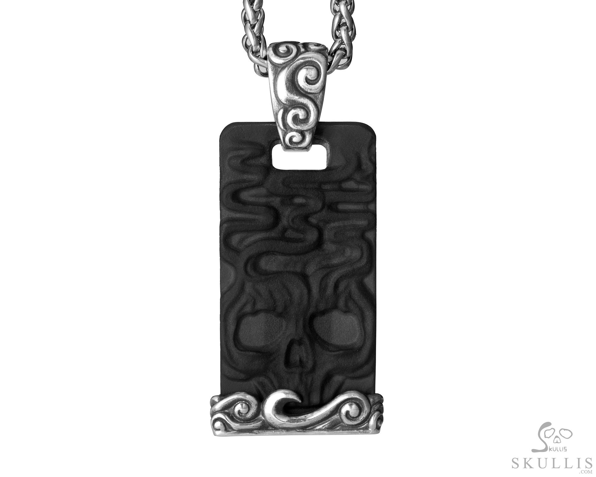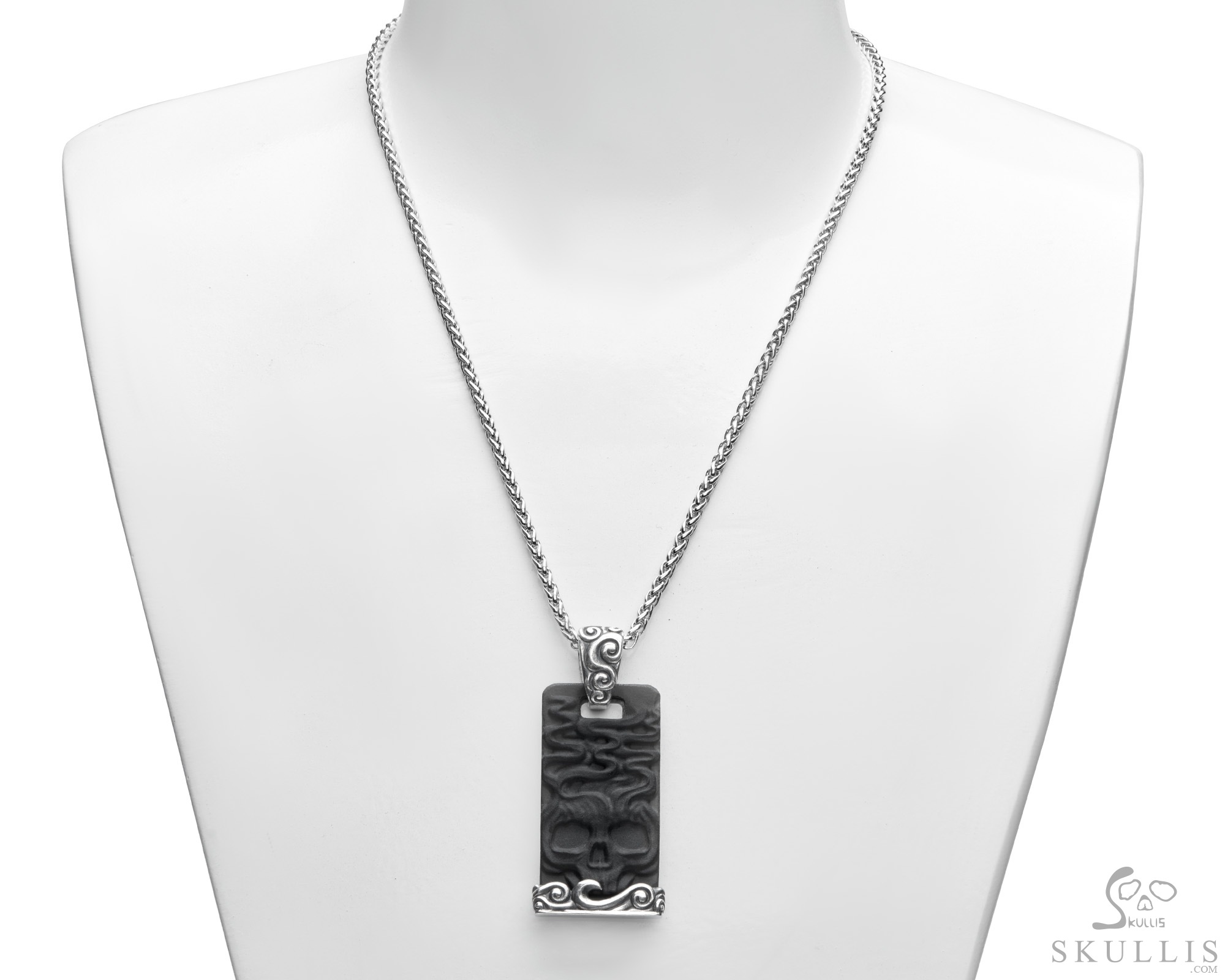 Necklace of 1.4" Black Obsidian Carved Crystal Skull with 925 Silver Headset Pendant, Skull Jewelry with 925 Chain Include