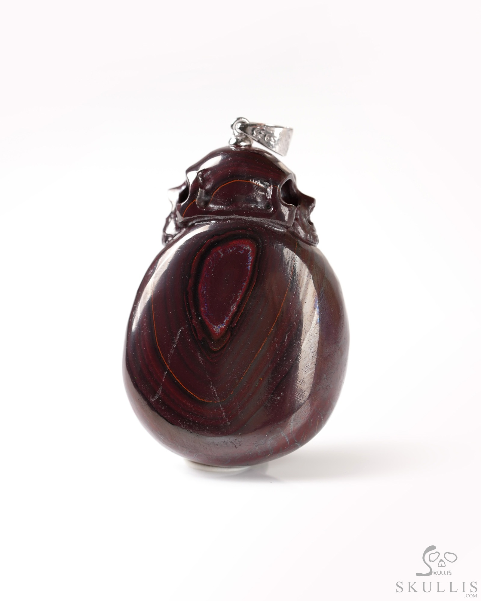 Necklace of 1.7" Ammolite Hand Carved Crystal Skull Pendant, Skull Jewelry