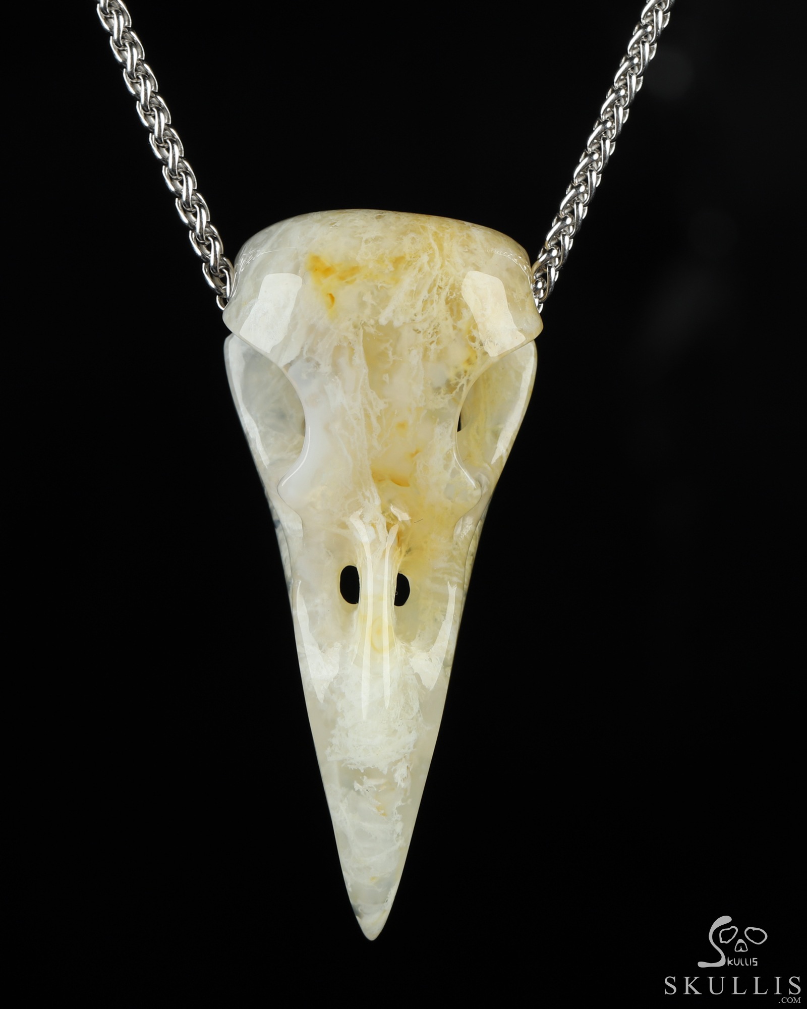 Necklace of 2.1" Green Moss Agate Hand Carved Crystal Skull Pendant, Skull Jewelry