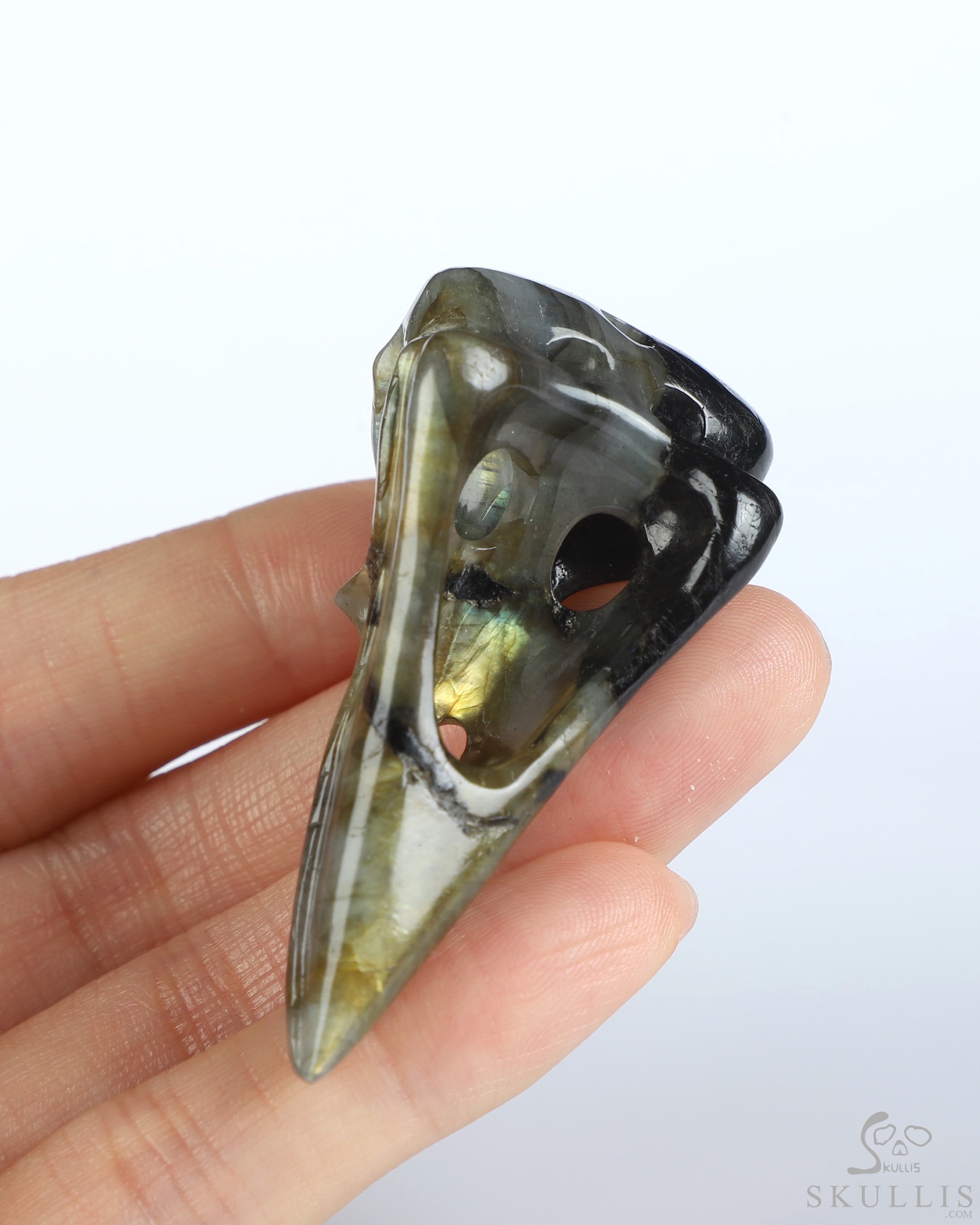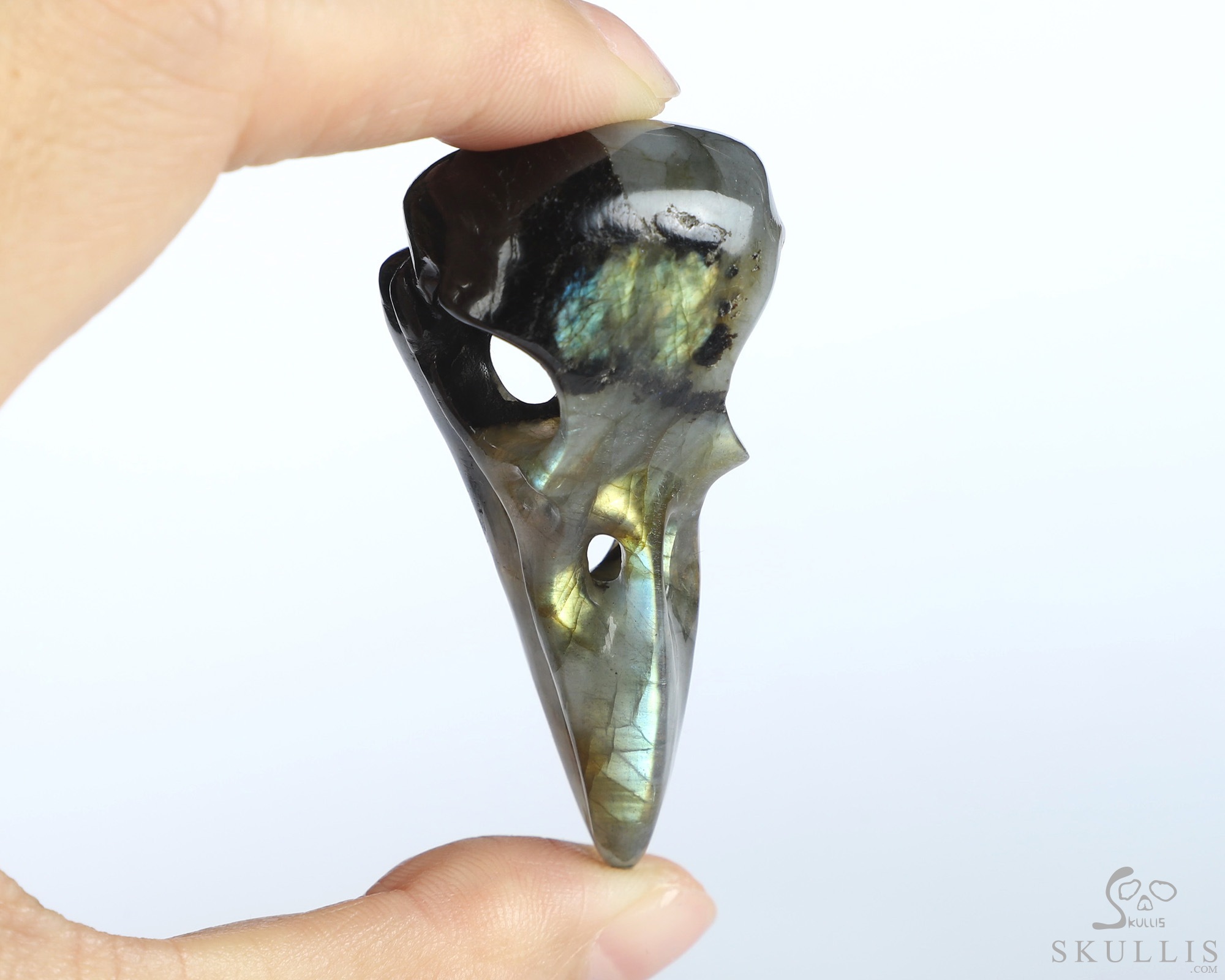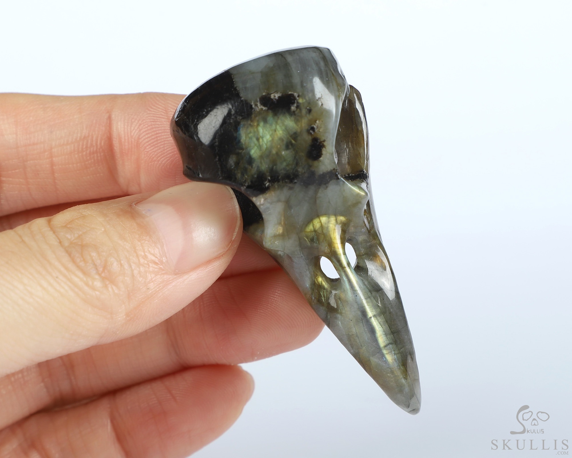 You are looking at a Labradorite skull. The skull is 2.1 inches from front to back.