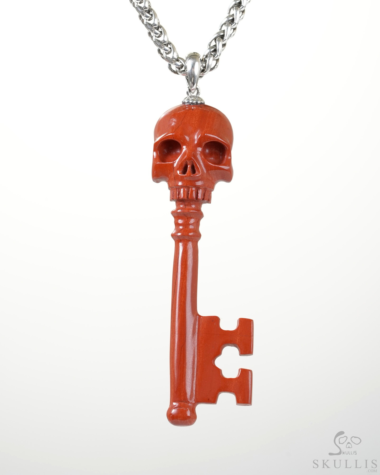 Necklace of 2.2" Red Jasper Hand Carved Crystal Skull Pendant, Skull Jewelry