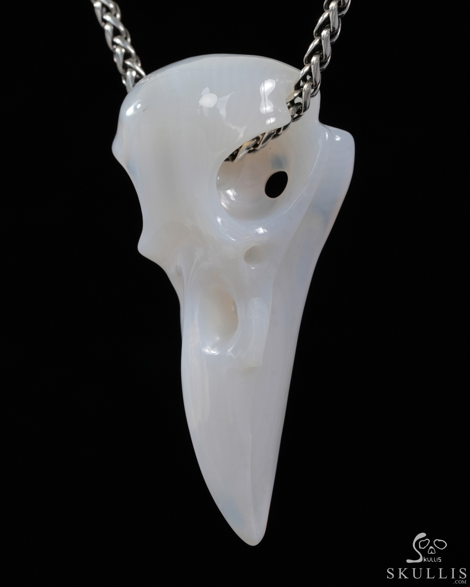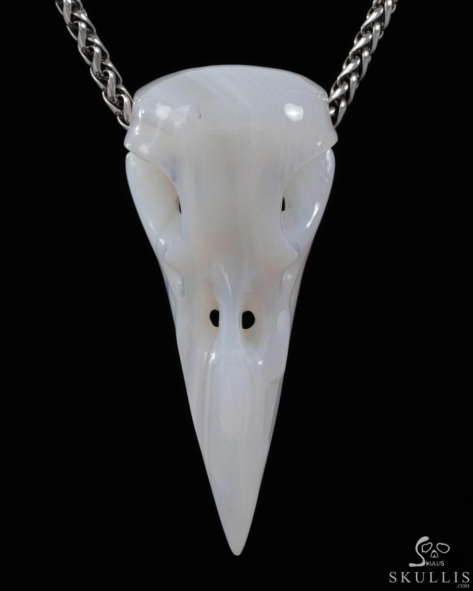 Necklace of 2.3" Agate Hand Carved Crystal Skull Pendant, Skull Jewelry