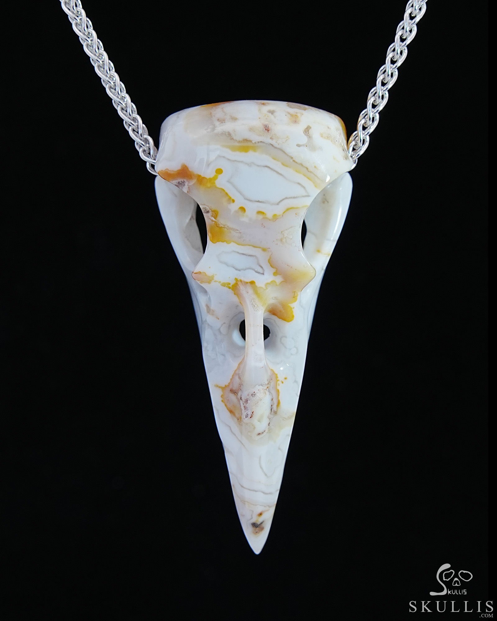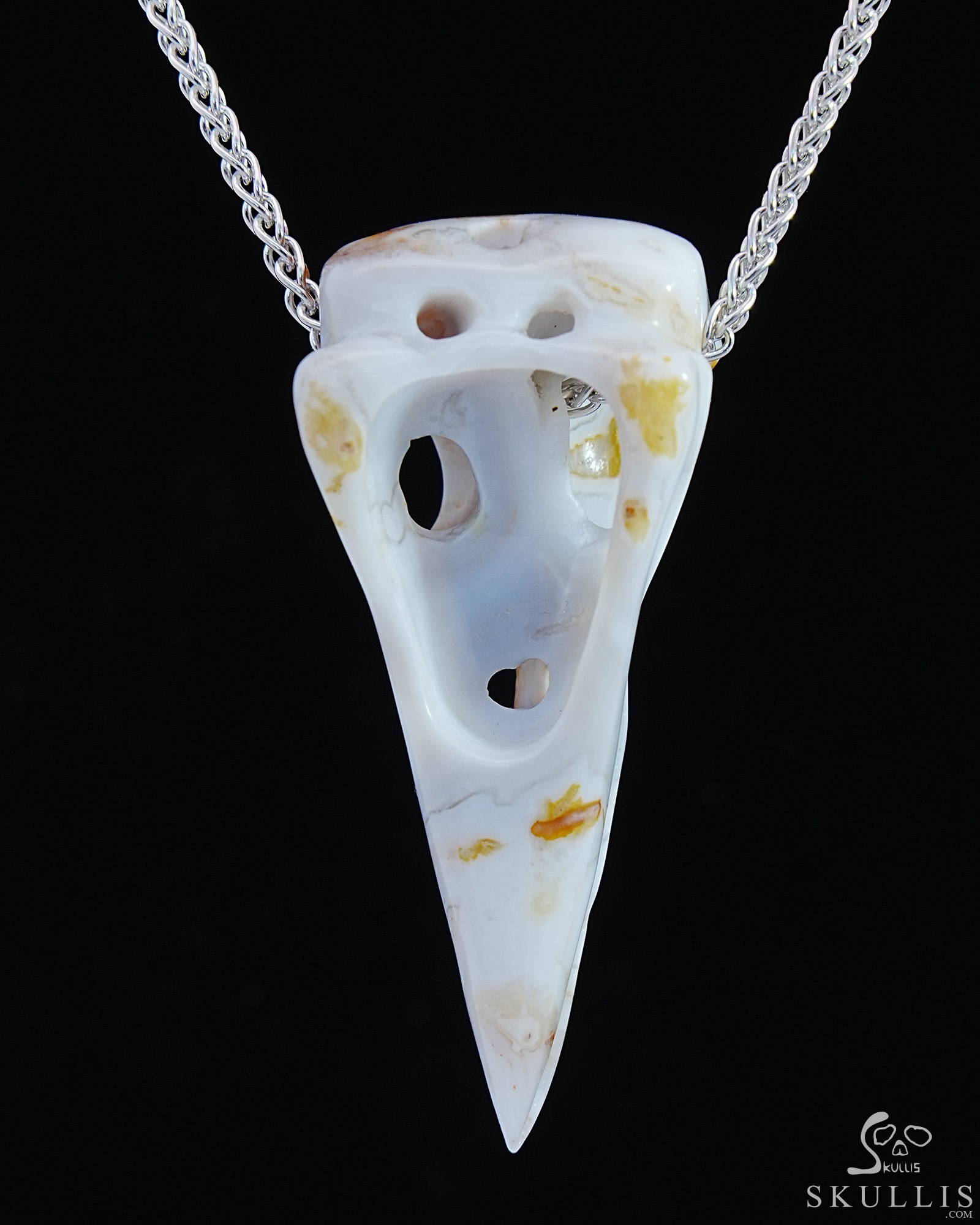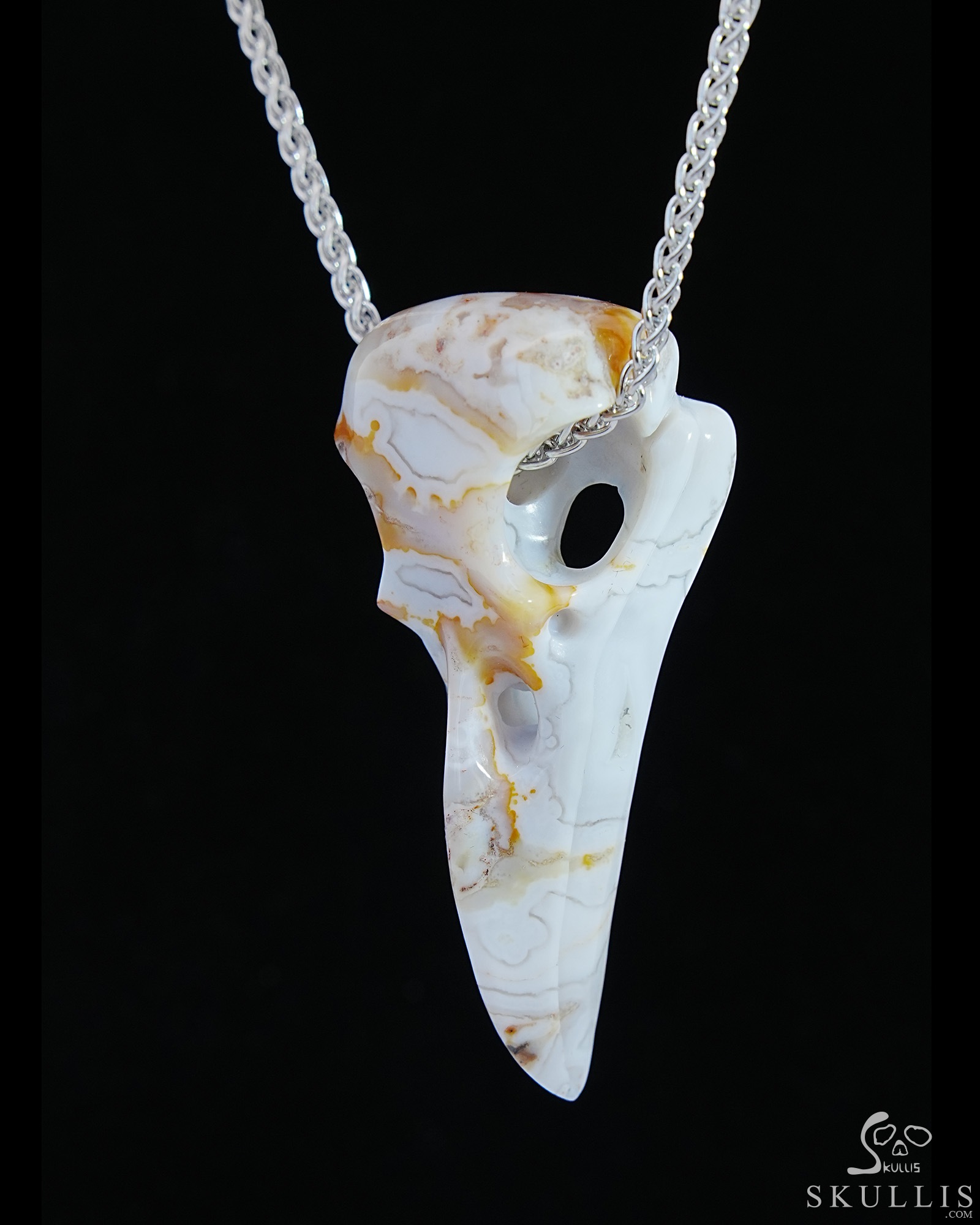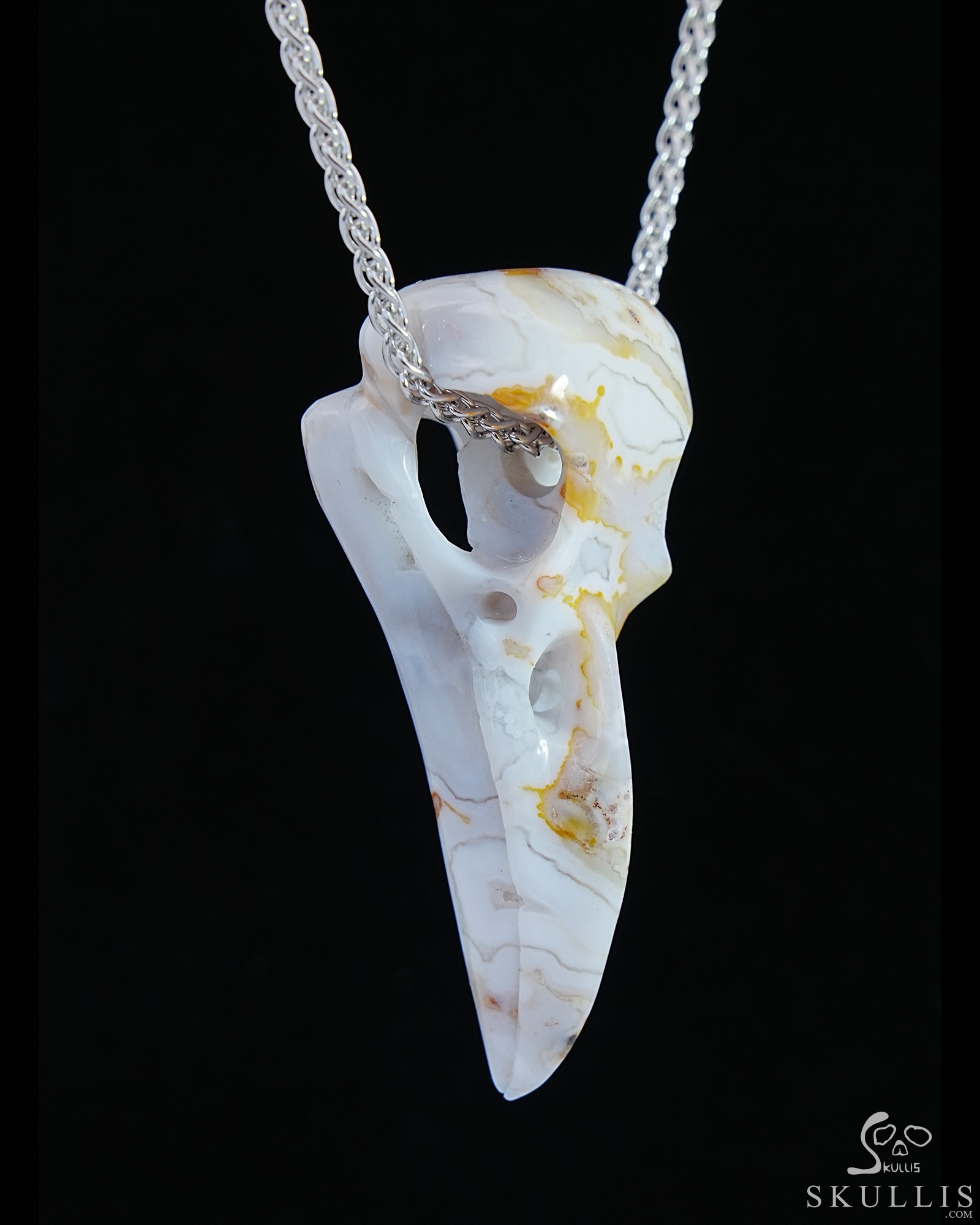 Agate Carved Crystal Raven Skull Pendant