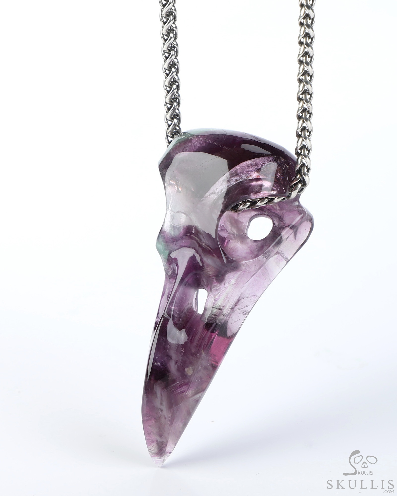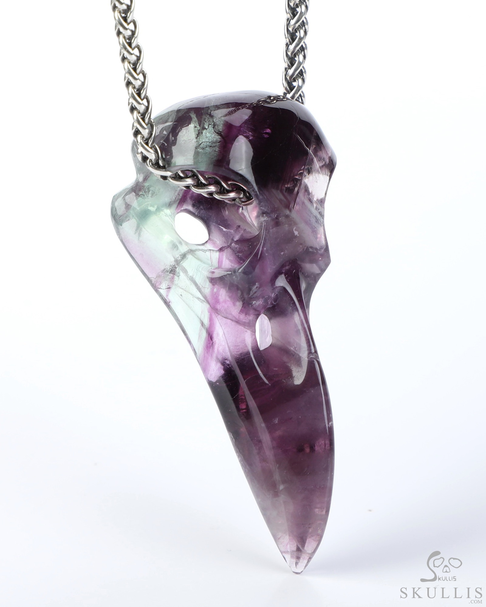 Necklace of 2.3" Fluorite Hand Carved Crystal Skull Pendant, Skull Jewelry