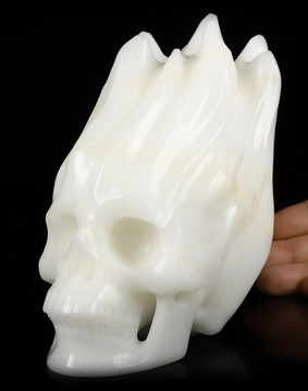 6.0" White Jade Carved Crystal Wolf Skull, Crystal Healing