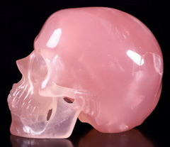 Lifesized 7.0" Rose Quartz Carved Crystal Skull, Super Realistic