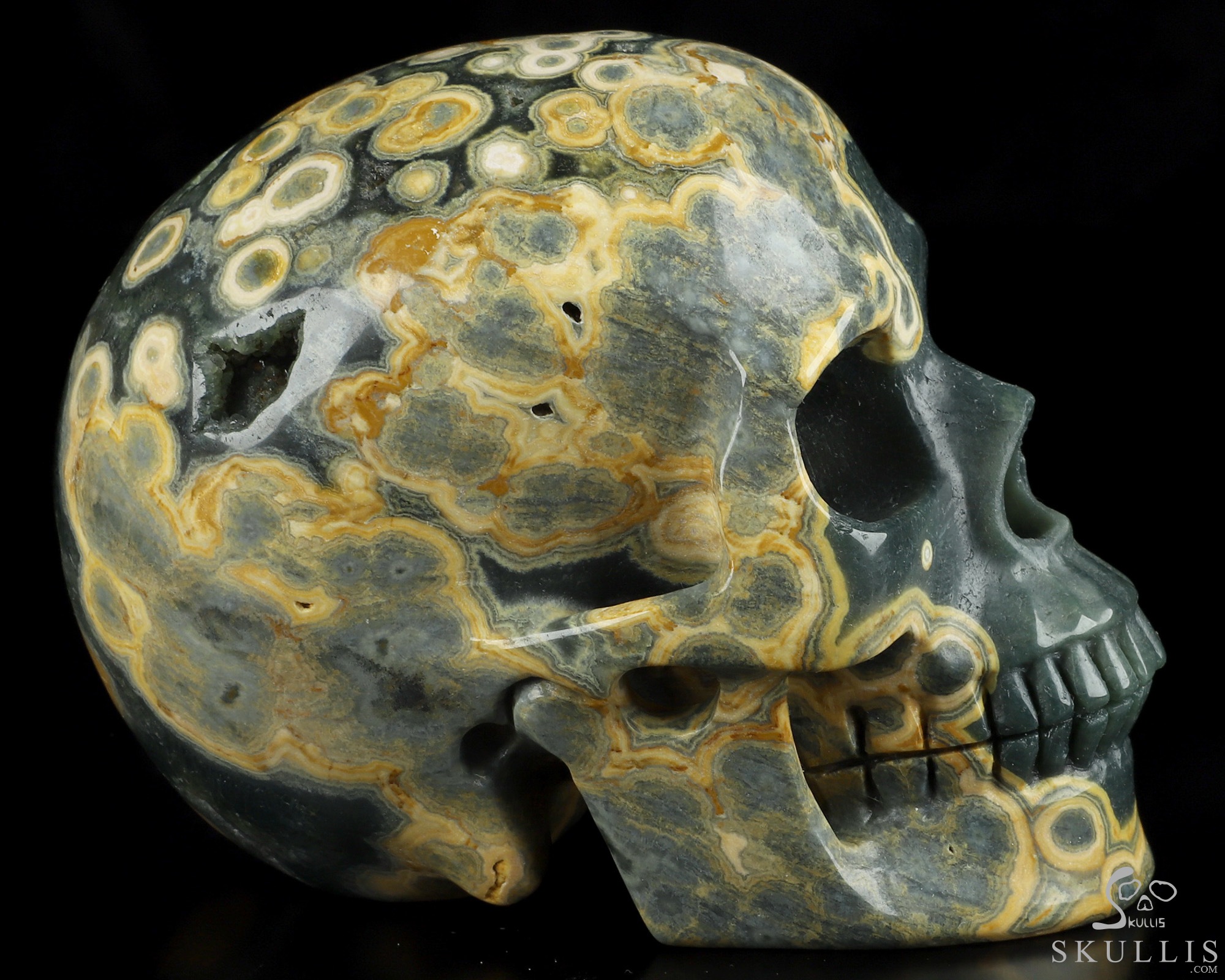 Giant Gemstone 8.0" Ocean Jasper Carved Crystal Skull, Super Realistic