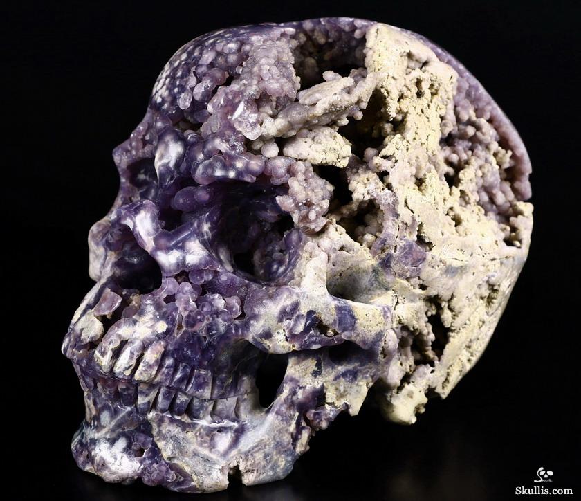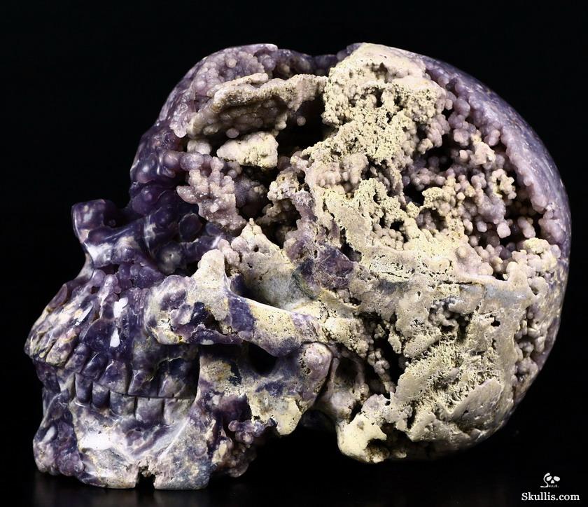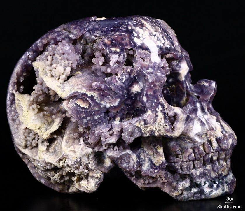 Top Quality GEMSTONE Lifesized 6.9" Purple Grape Agate Carved Crystal Skull,Super Realistic, GEODE