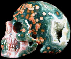 Lifesized 7.0" Ocean Jasper Carved Crystal Skull, Realistic, Crystal Healing