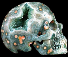 Geode Huge 5.0" Ocean Jasper Carved Crystal Skull, Realistic, Crystal Healing