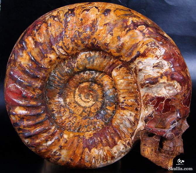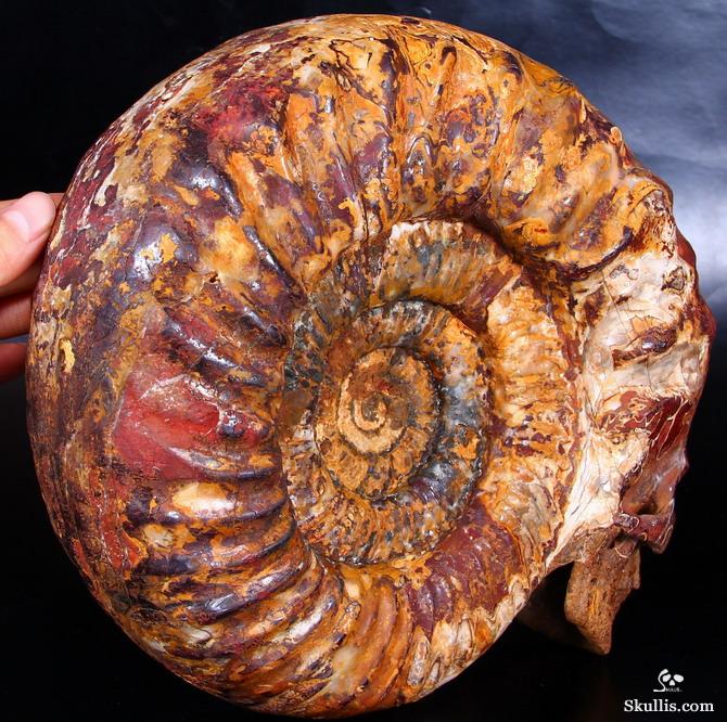Huge 7.4" Ammonite Fossil Carved Crystal Skull
