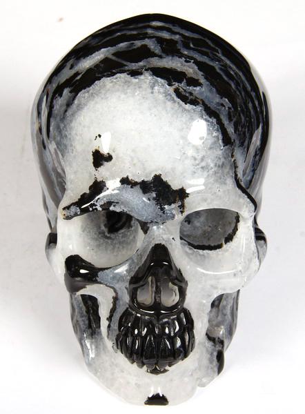 Oct 3, 2014 ACSAD (A Crystal Skull a Day) - Crystal Skull of the Medicine Buddha - Suleiman Black Zebra Agate Carved Crystal Skull Sculpture