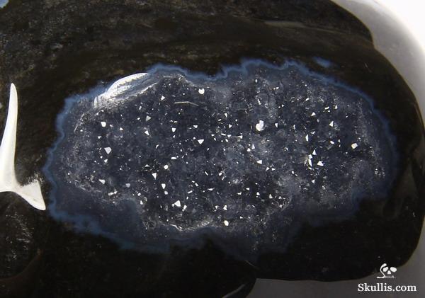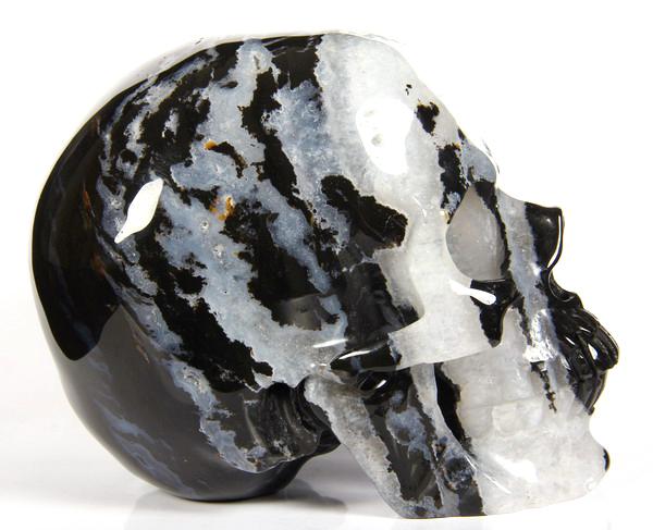 NOTE: Skullis does not prescribe treatment for medical issues. Skullis offers information for reference to assist with the selection and understanding of crystal skulls, including this suleiman black zebra agate crystal skull sculpture.