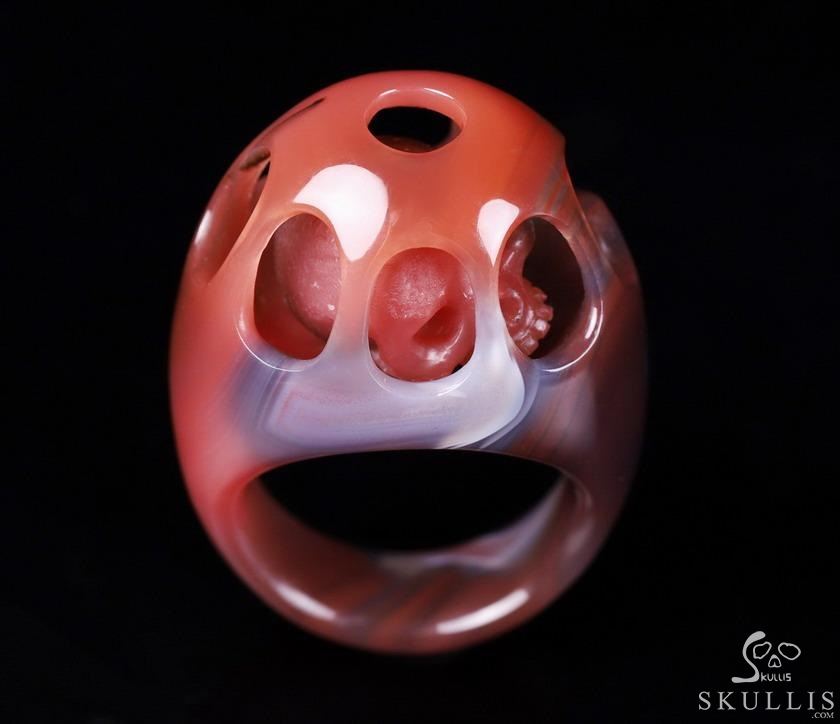 Original Design 1.6" Mozambique Agate Carved Crystal Skull insides Ring, Healing