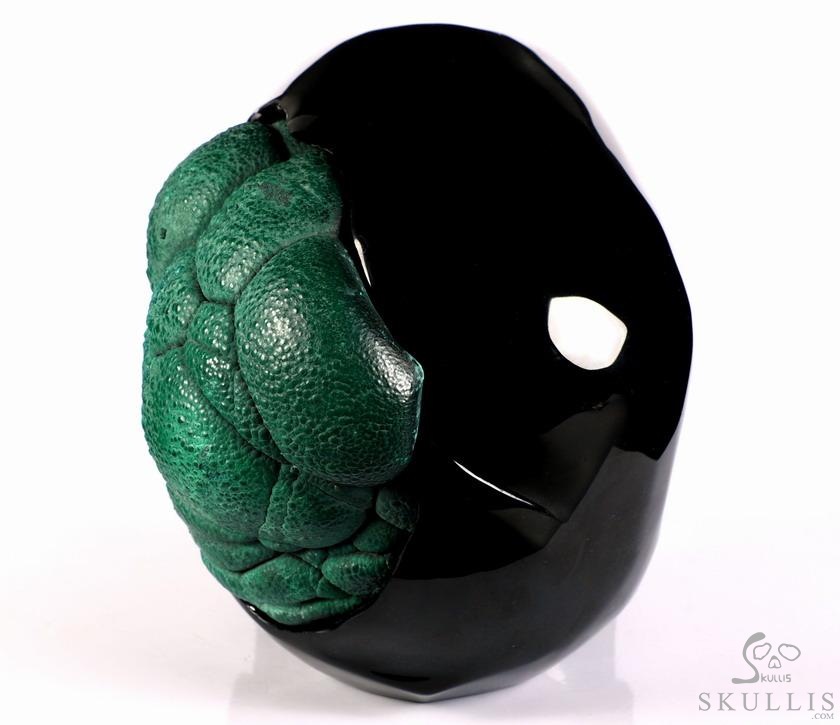 Original Design Giant 8.1" Black Obsidian Carved Crystal Skull With Malachite Brain, Super Realistic, Healing