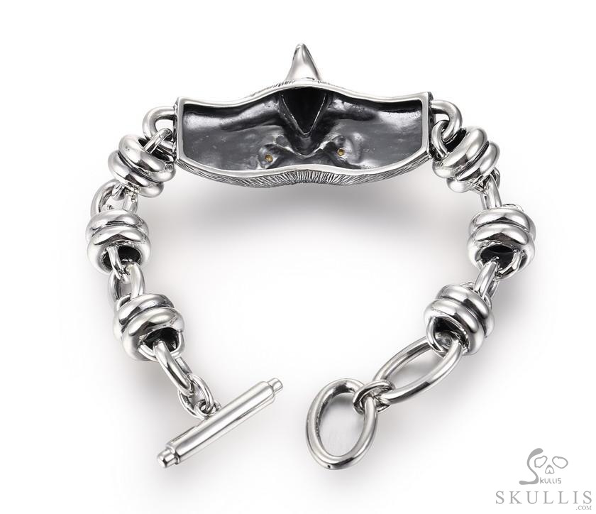 Oxidized 925 Sterling Silver Granet Eyes Eagle with Large Loops Chain Bracelet