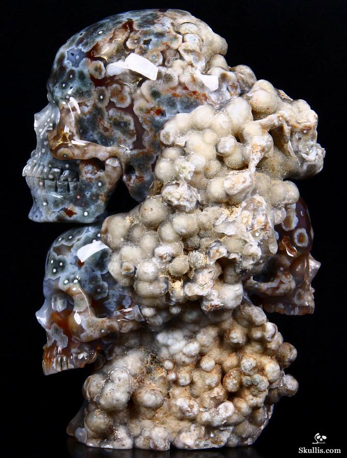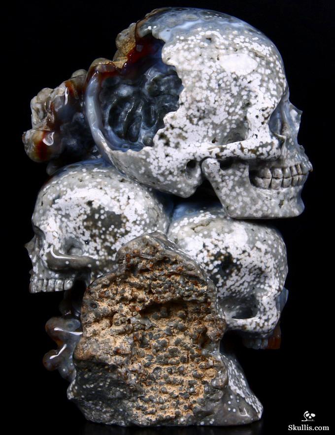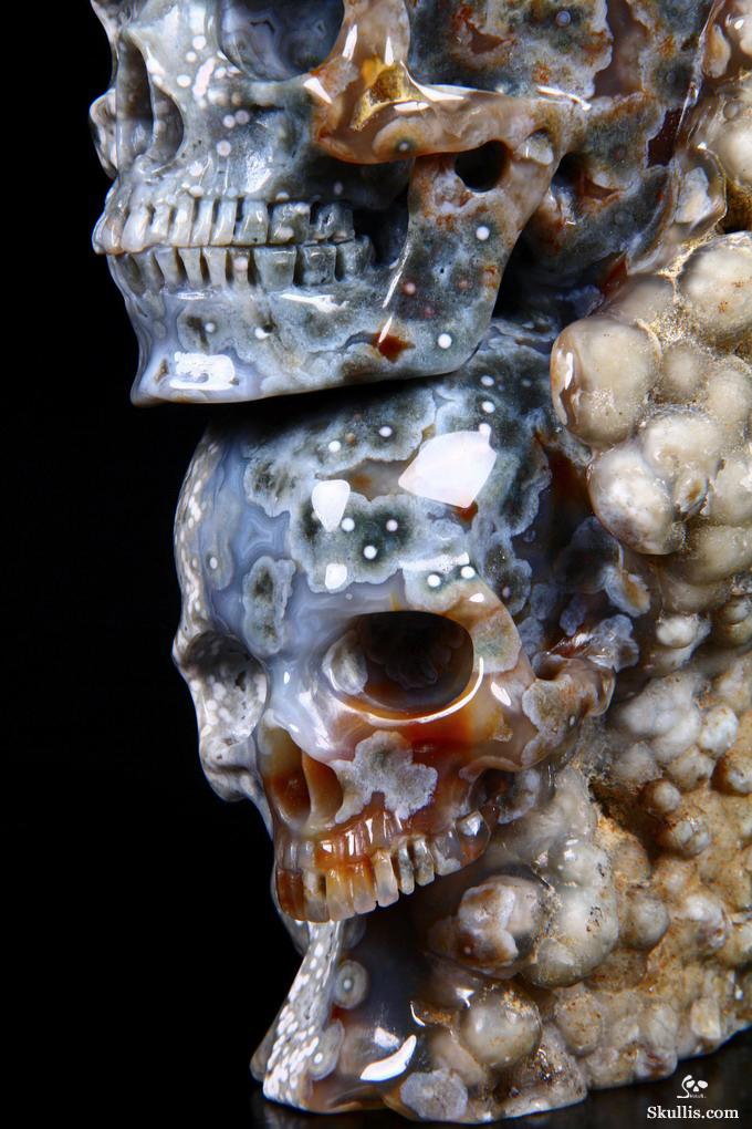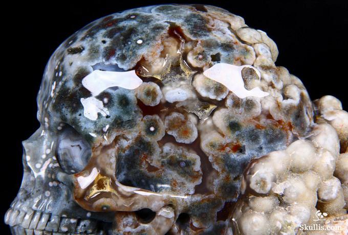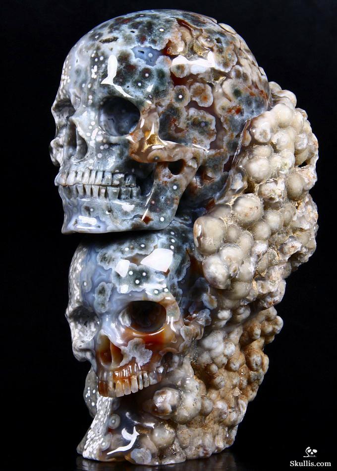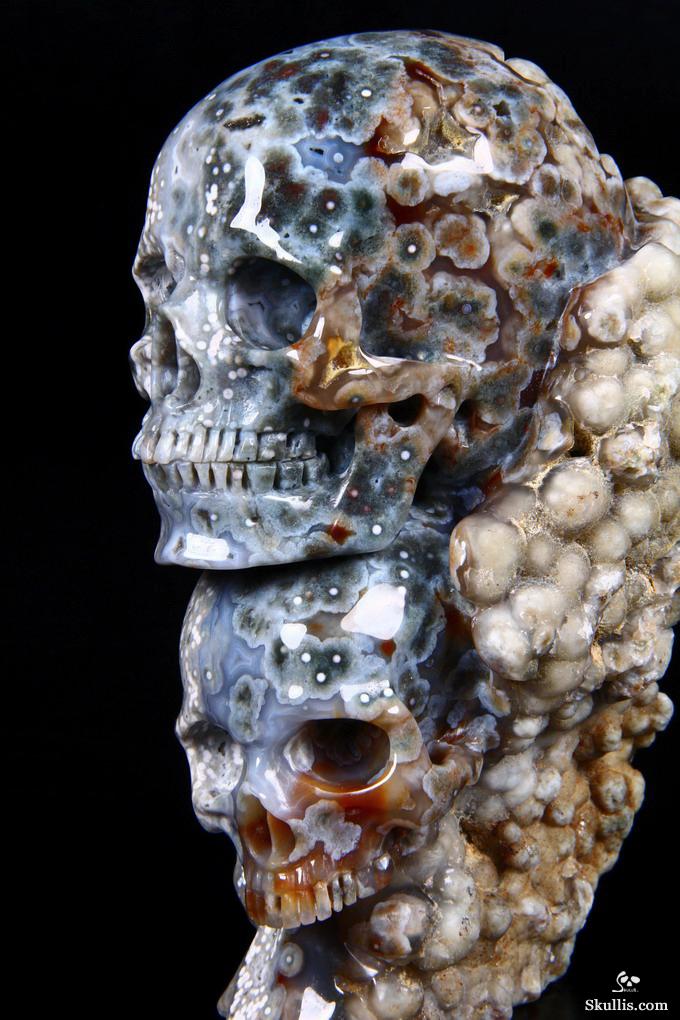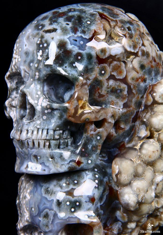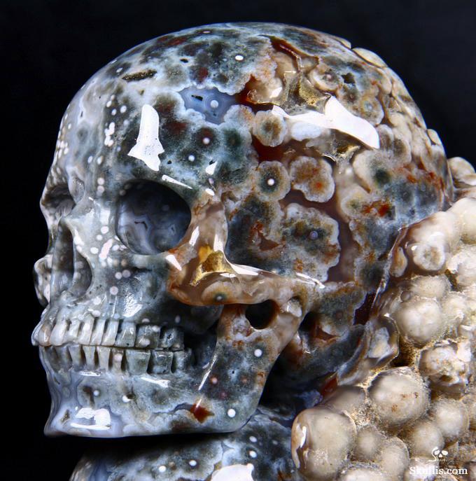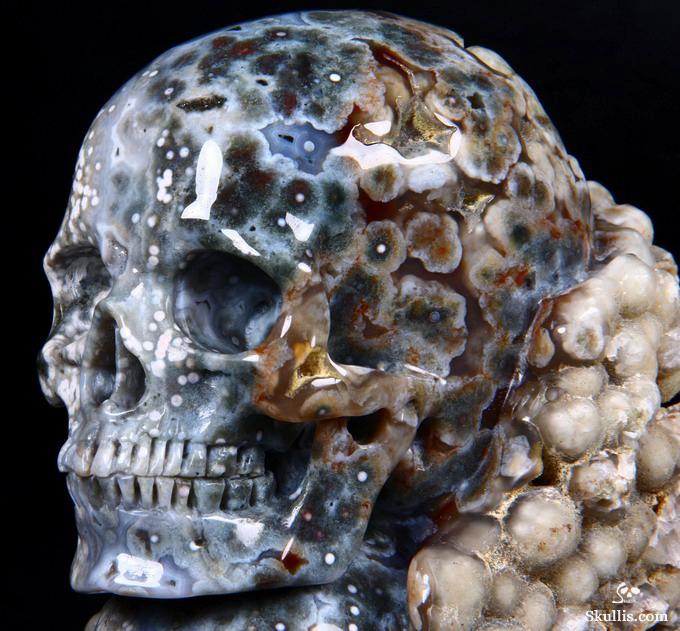 Huge 5.0" Ocean Jasper Carved Crystal Skull Super, Realistic, Crystal Healing