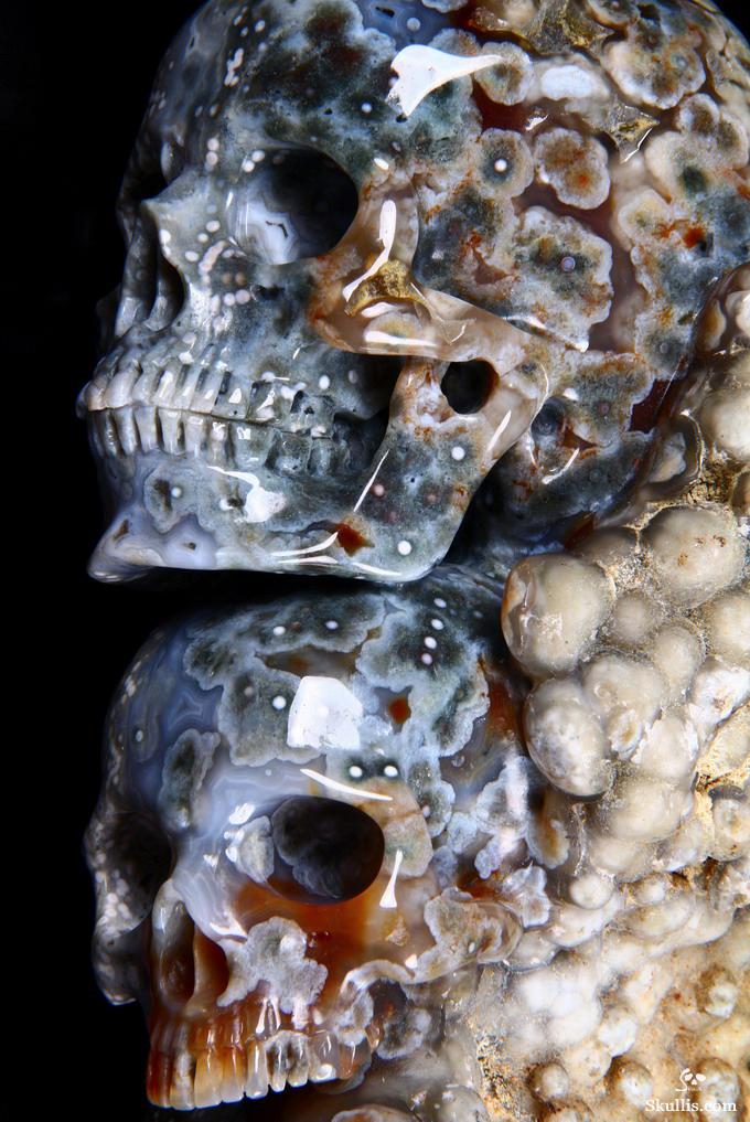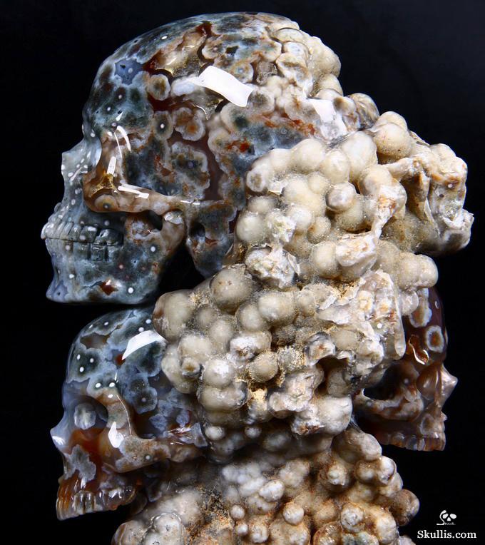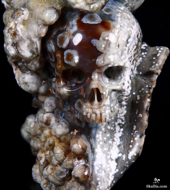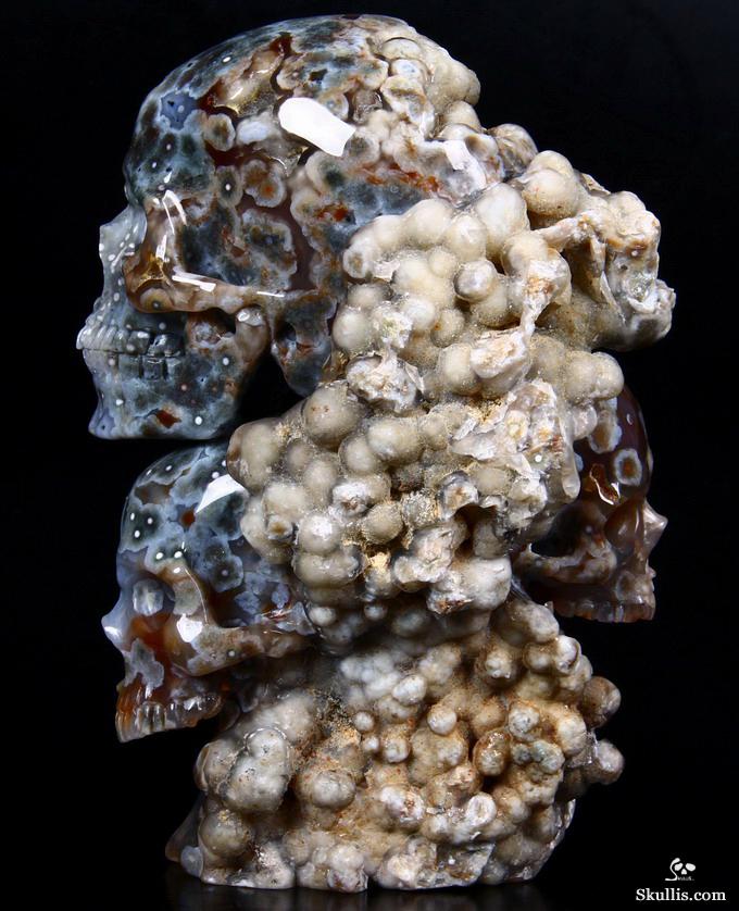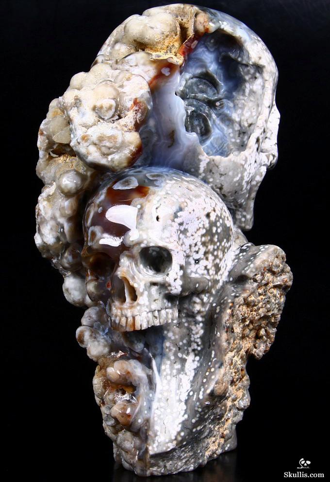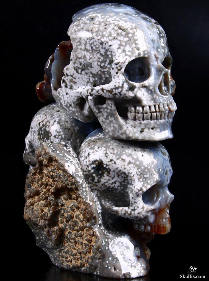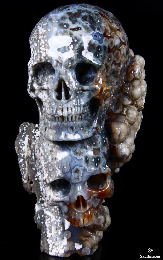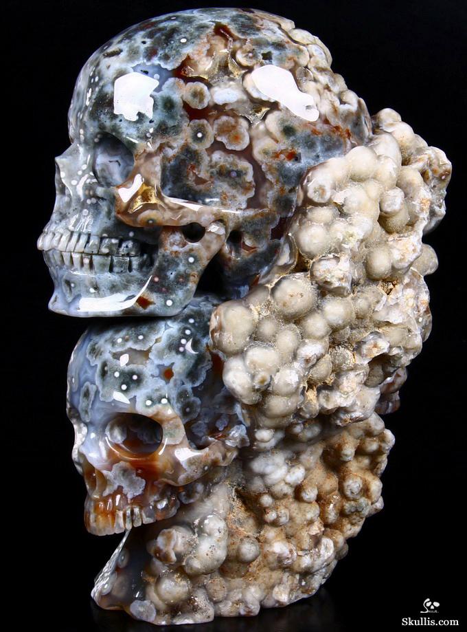 Huge 5.0" Ocean Jasper Carved Crystal Skull Super, Realistic, Crystal Healing