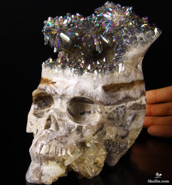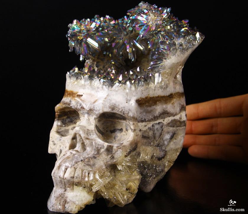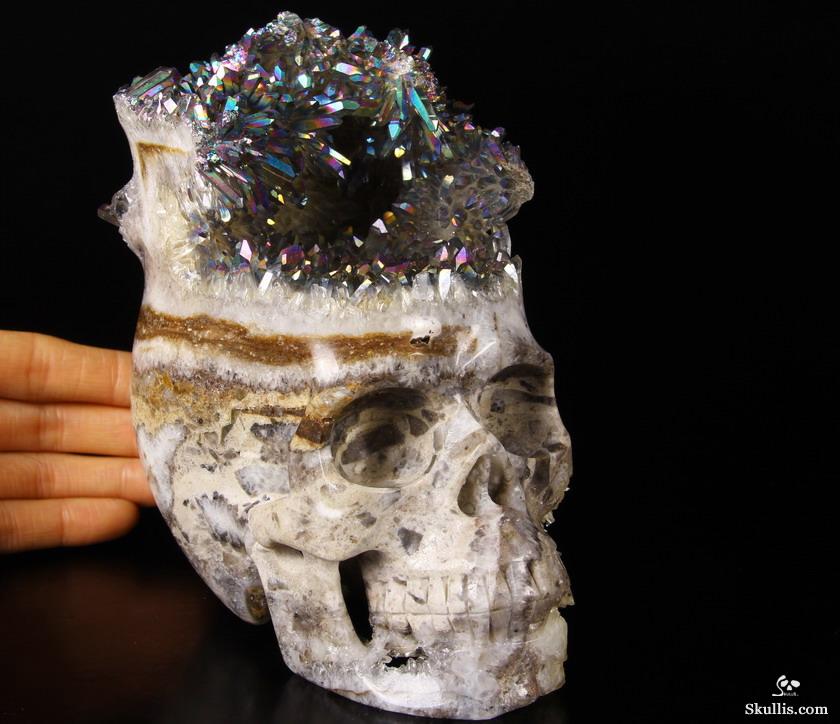 Lifesized 6.7" Rainbow Aura Quartz Druse Carved Crystal Skull, Super Realistic, Healing