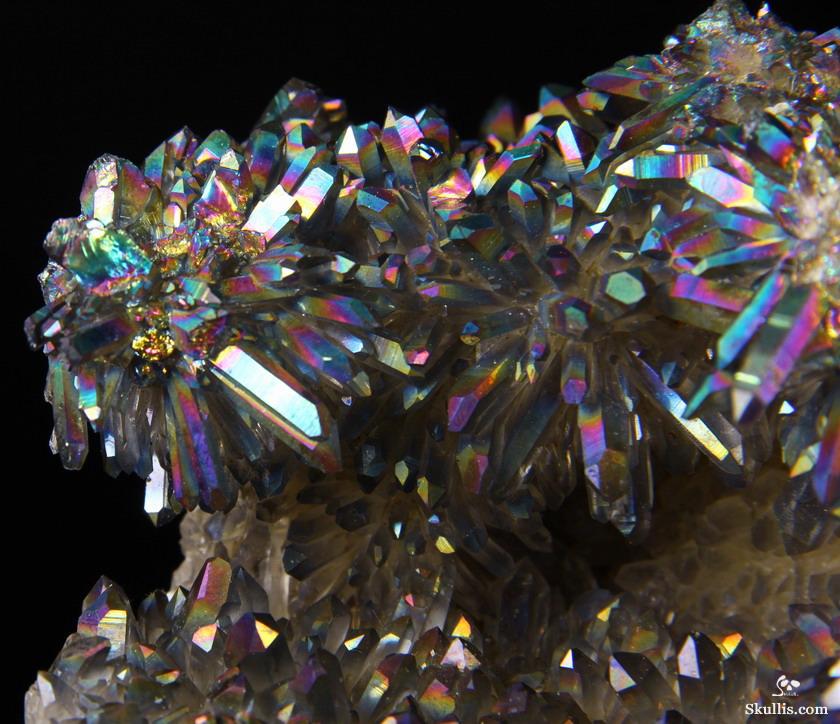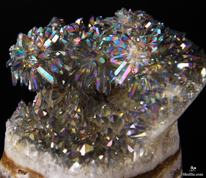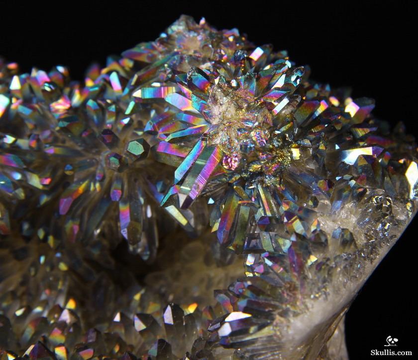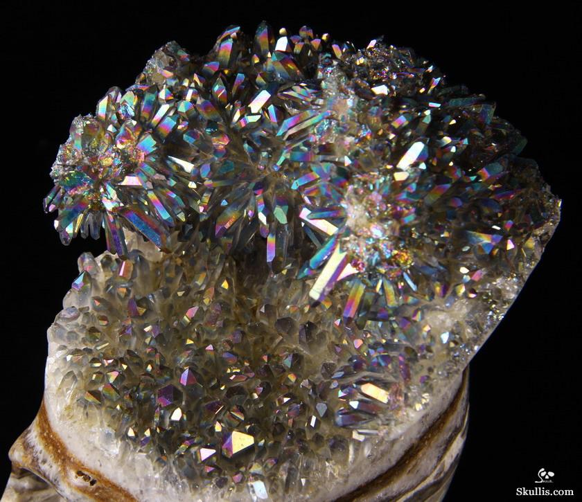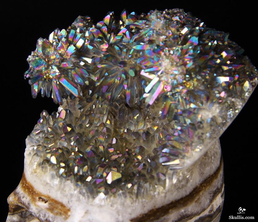Rainbow 5.1" Rainbow Aura Quartz Druse Carved Crystal Skull, Crystal Healing