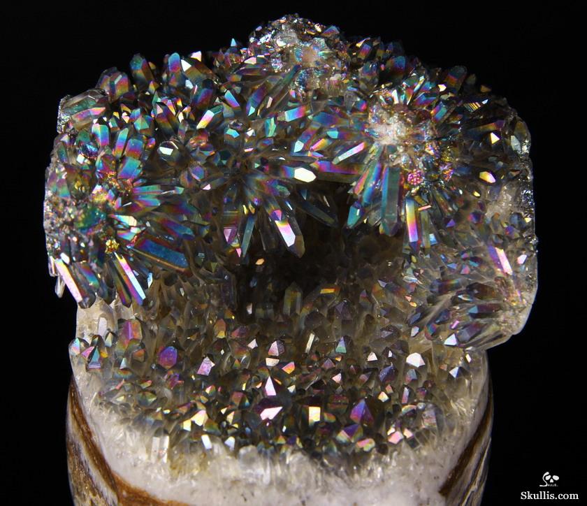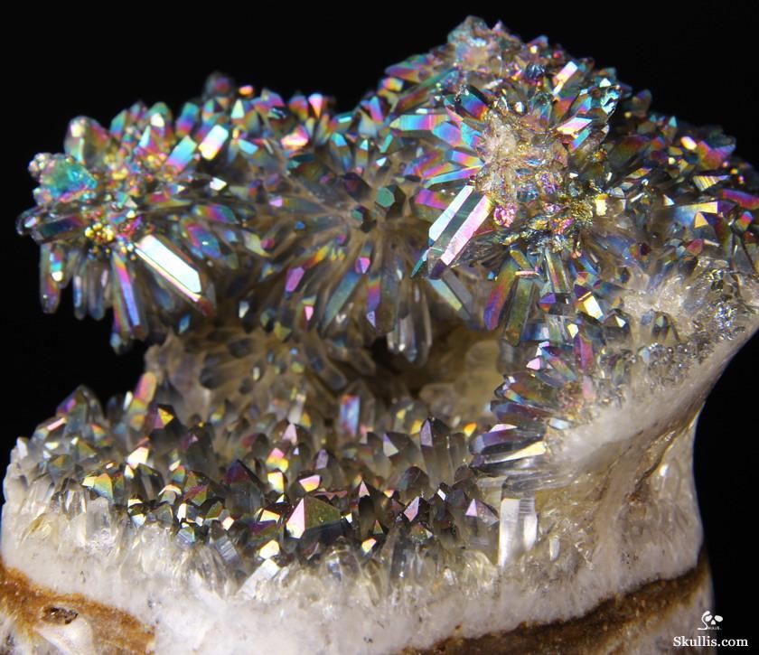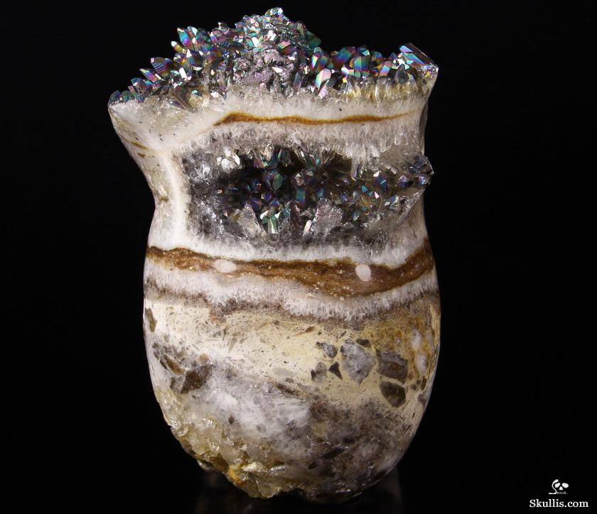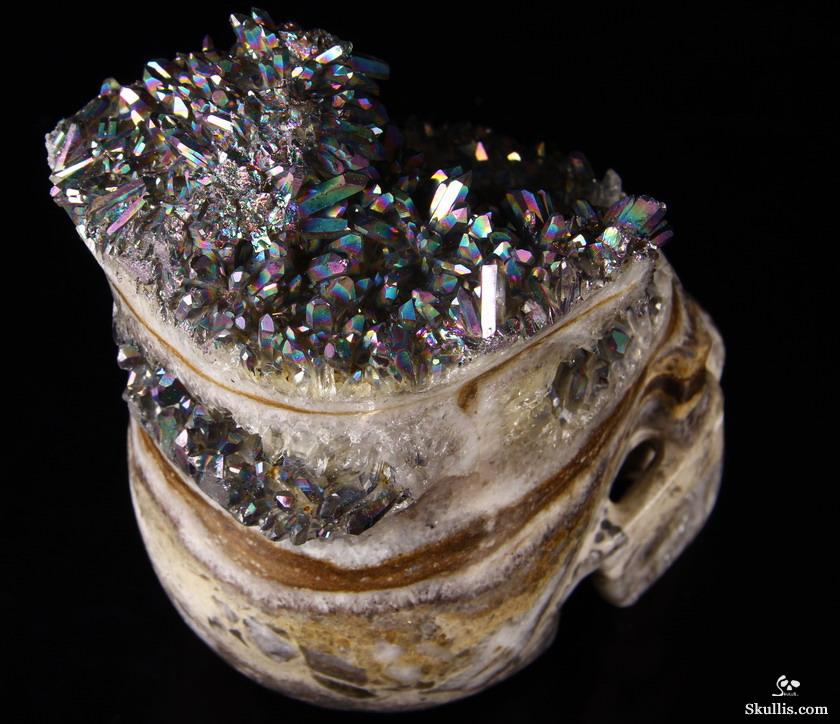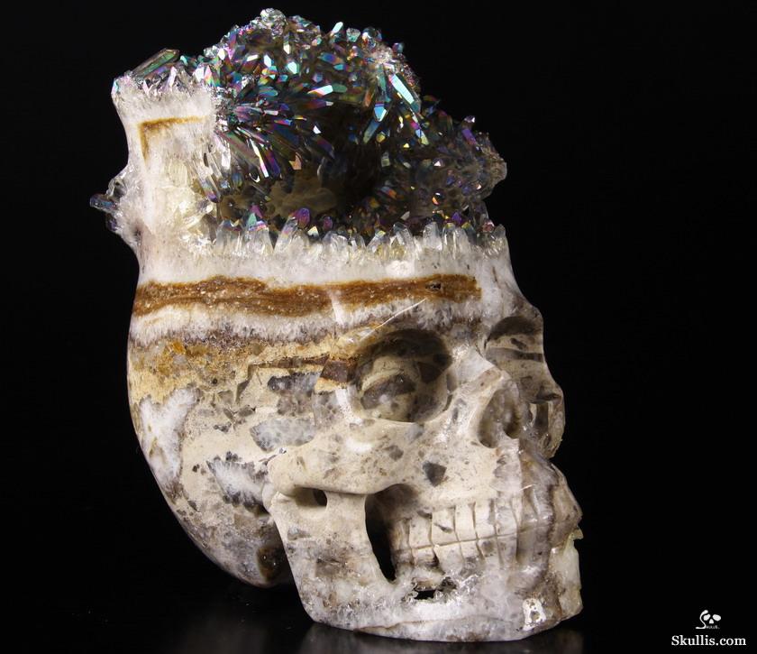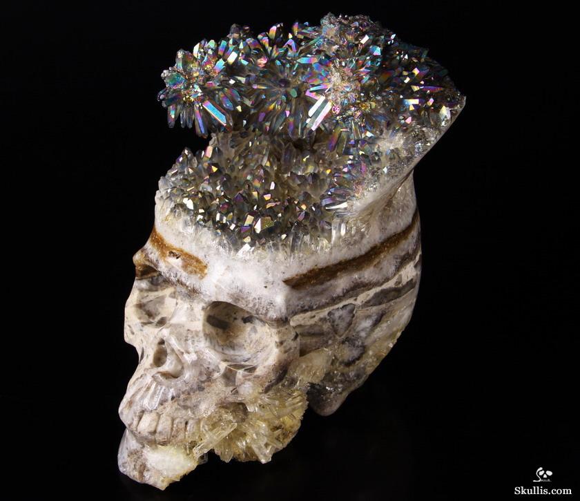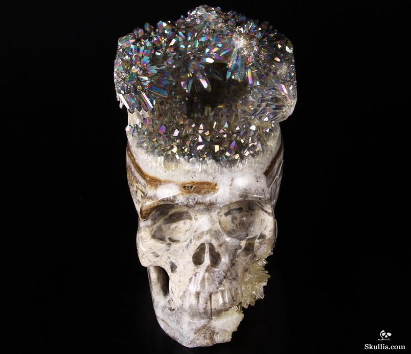 5.2" Rainbow Aura Quartz Druse Carved Crystal Skull, Crystal Healing