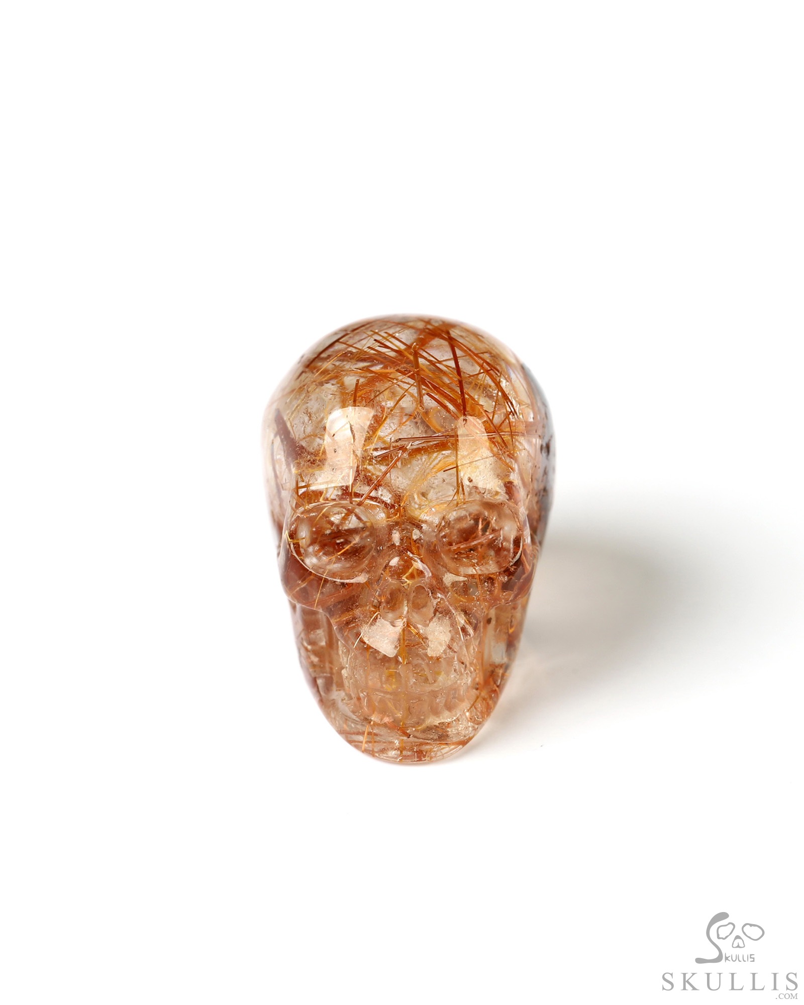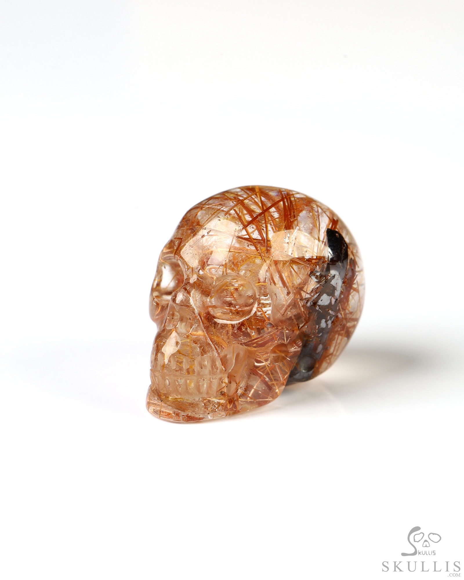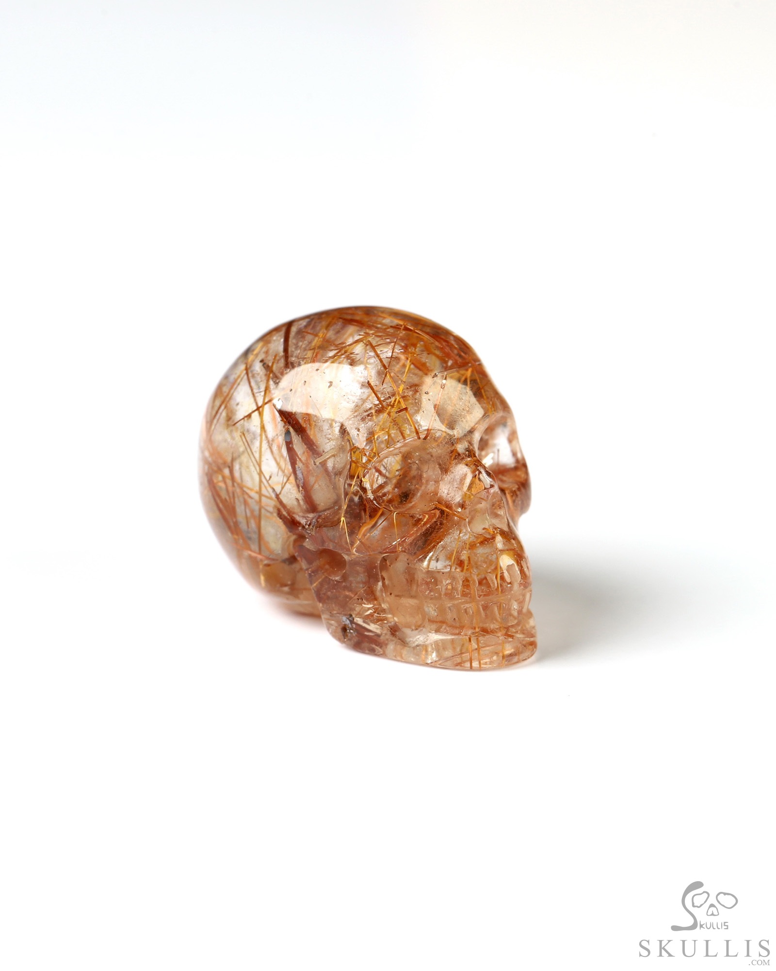 Rare 0.7" Rutilated Quartz Rock Carved Gem Skull, Skullis Realistic
