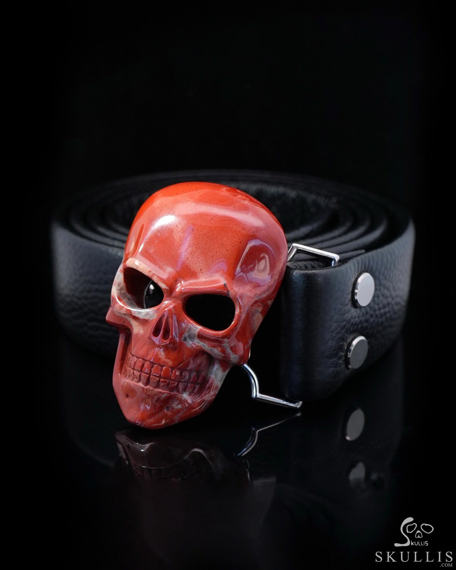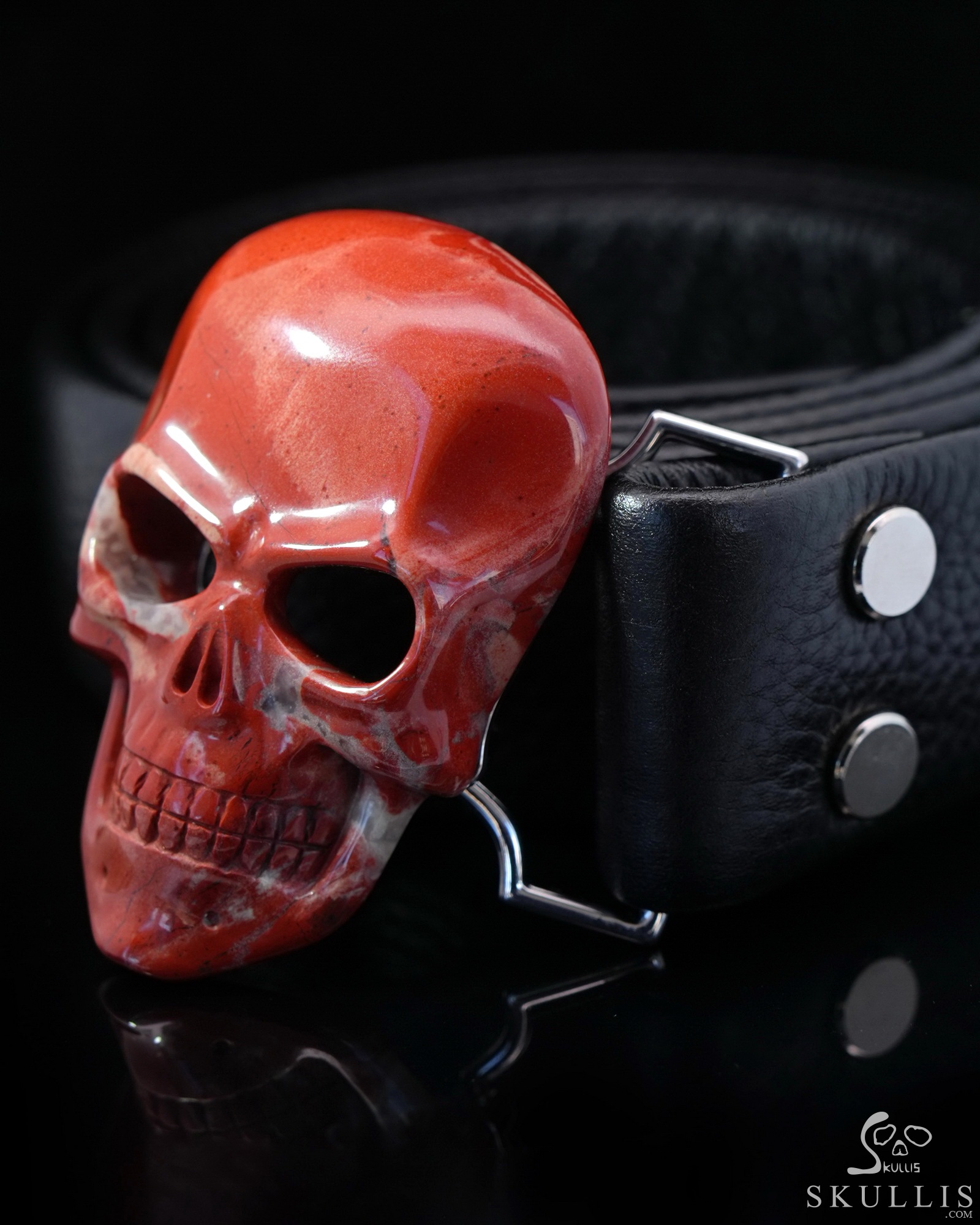 Red Jasper Hand Carved Crystal Skull Buckle, Skull Jewelry
